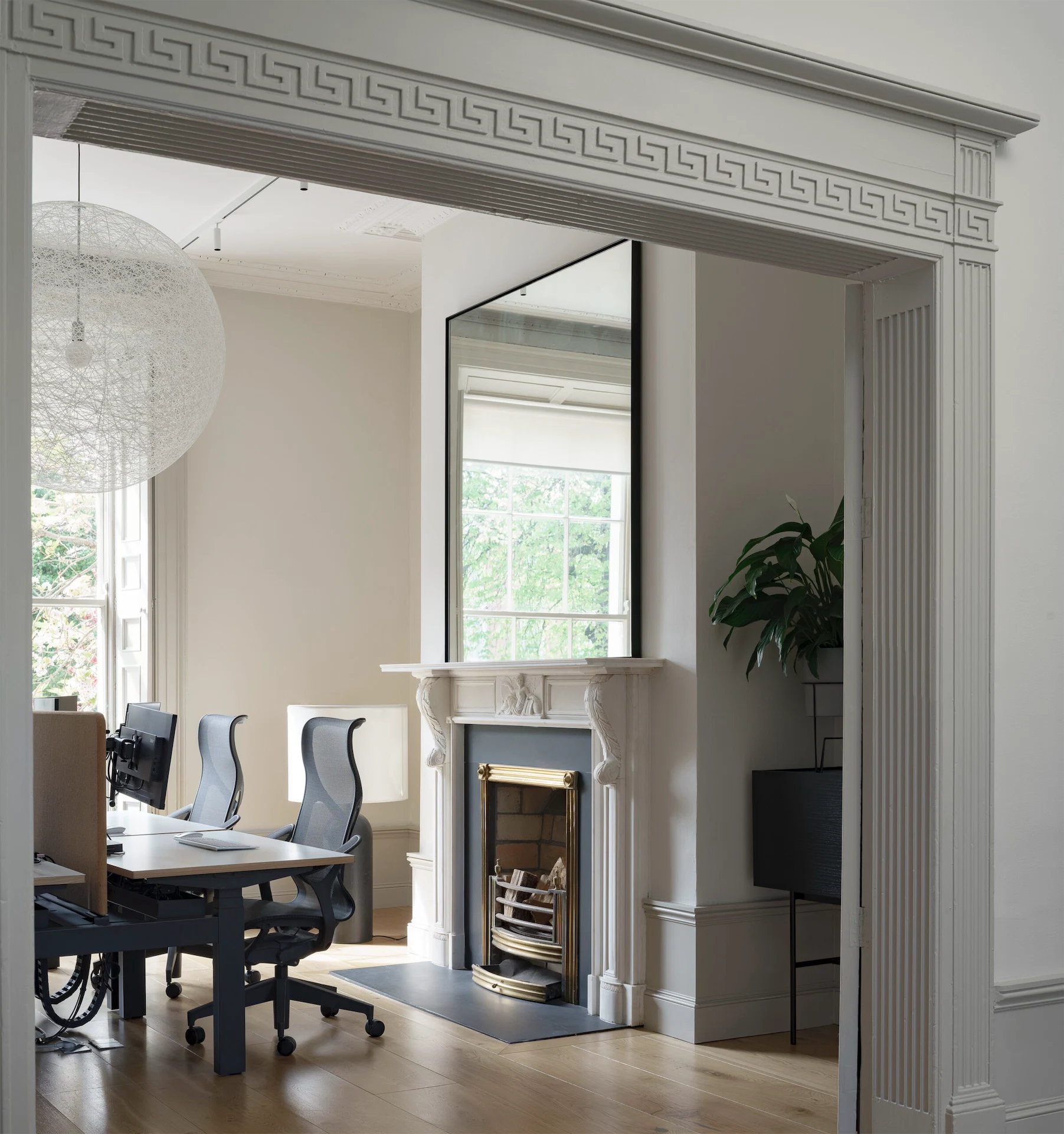 “Also the quality of what went in, in terms of the office furniture brands we used, makes a huge difference. The informal breakout space and meeting area upstairs are no different from a conventional office, but we just chose a layout that suits both the house and the client, and then pieces that complement the rooms and features. All of it is commercial grade so it’s not domestic in any way, but it’s the manner in which the pieces are put together and this striking Georgian setting that makes it unique.”