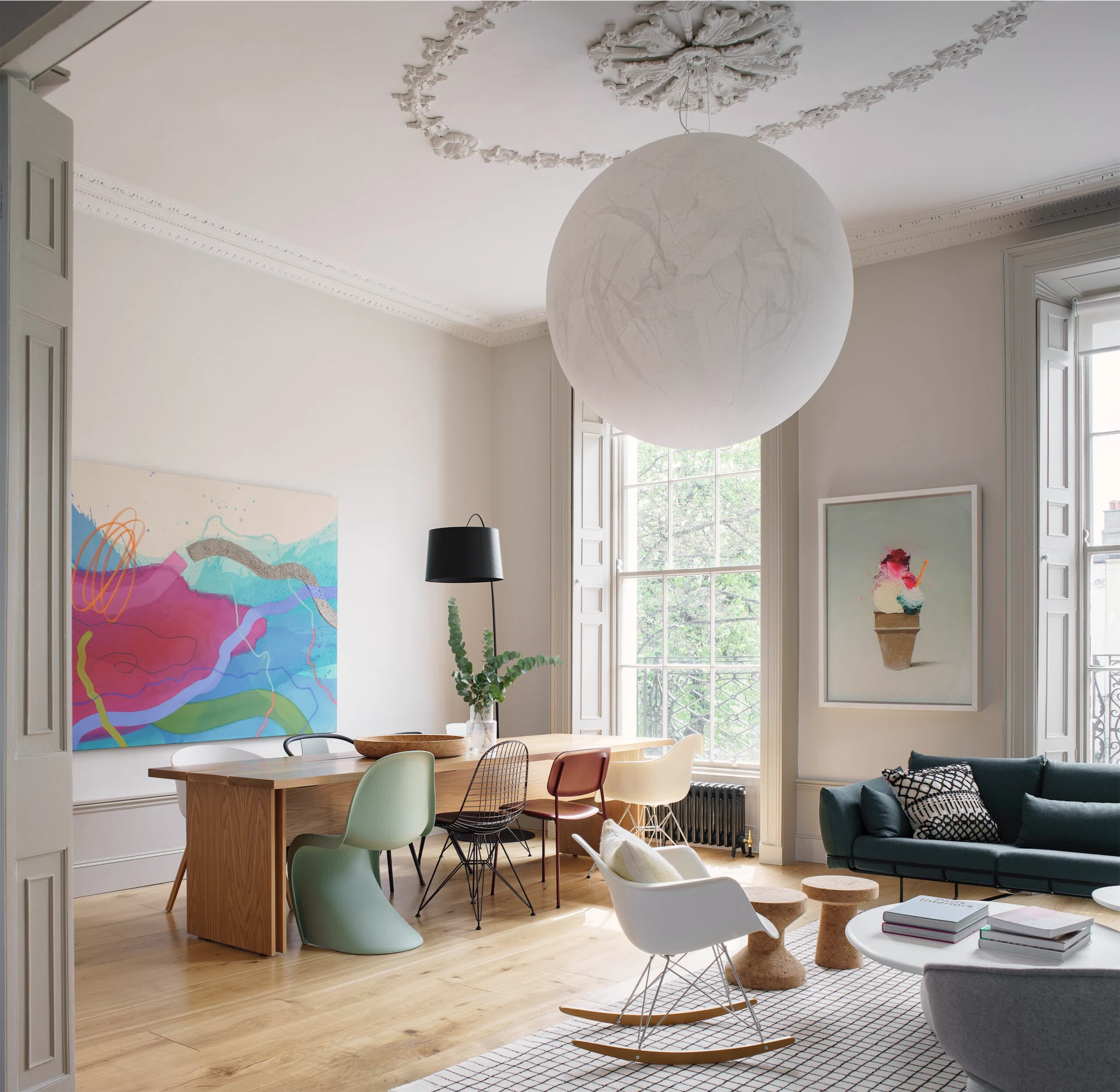“There’s no reason why the rest of the fittings and fixtures can’t be really dramatic, but also sympathetic to the original period features. It’s those pieces and the art that elevate the rooms past your normal office set-up,” Catherine says of the inspiration behind the refurbishment.