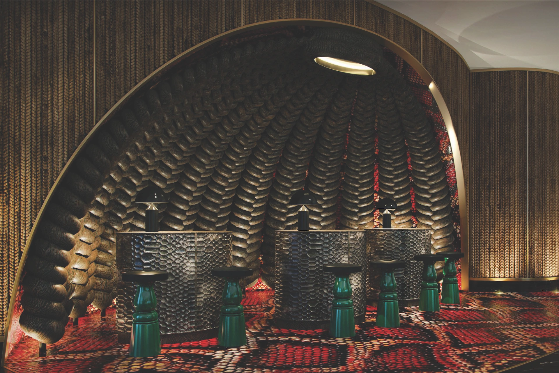 On arrival with my mom at the W Dubai, Mina Seyahi, we were struck by the hotel’s effortlessly relaxed atmosphere. From the sleek decor to the grand entrance marked by a wall waterfall and a prominent ‘W’ sign, the hotel exuded style, personality, and sophistication. The lobby, with its retro, bohemian-style interiors, left a lasting impression that radiated character, style, and class, making it a true fusion of modern and traditional elements. The hotel’s design is inspired by the ancient Mina Seyahi port and the dhow boats that once filled the harbour.