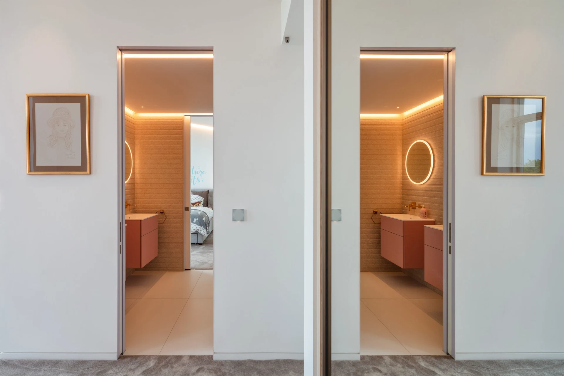 Sitting comfortably on a sloping site in Portmarnock with views down to the sea to one side and mature trees to the other, this modern family home is tucked behind a stepped wall so you have to drive right around before you get your first real peek. But it’s worth the wait.