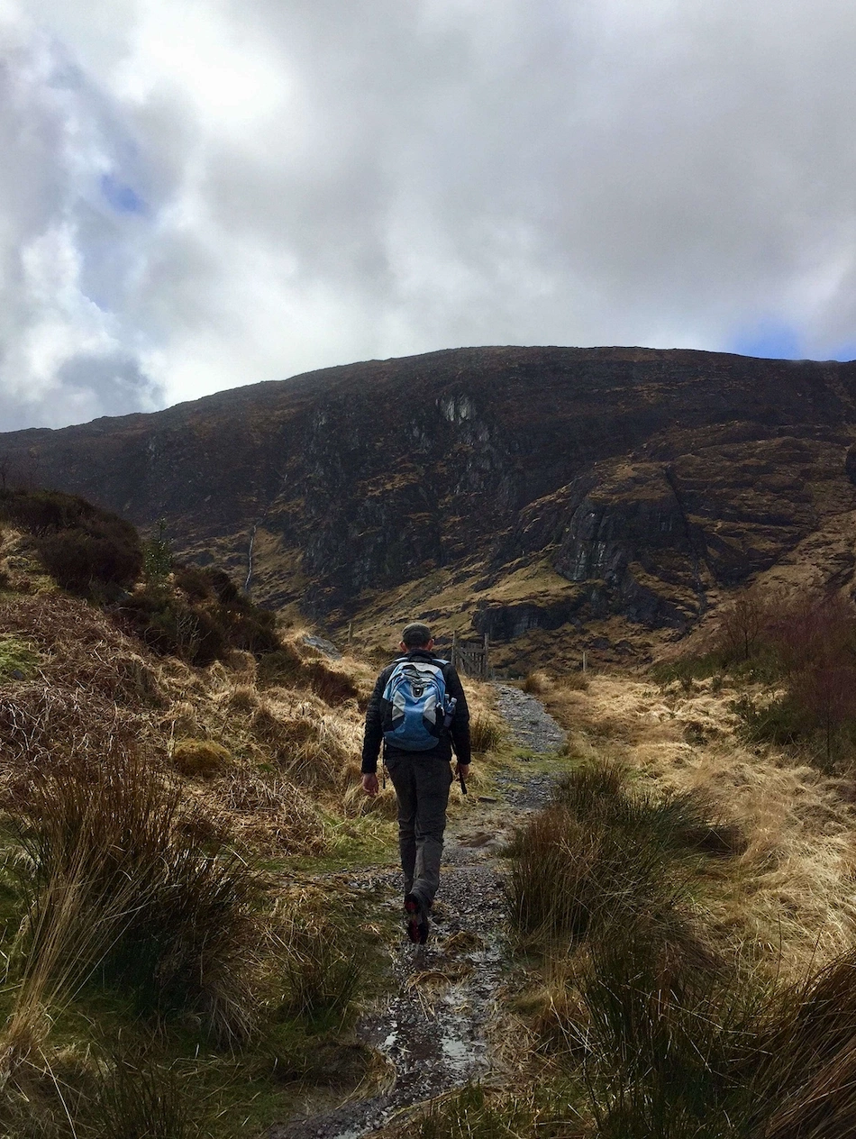 We’re nearly halfway through our guided hike on the Iveragh peninsula and engulfed in a palimpsest of glacial undulations, ancient oaks, crumbling walls, Famine-era potato plots, abandoned cottages, frolicking deer and hulking knuckles of red sandstone (so-called but actually grey), that, without an experienced guide, I would never notice. \
