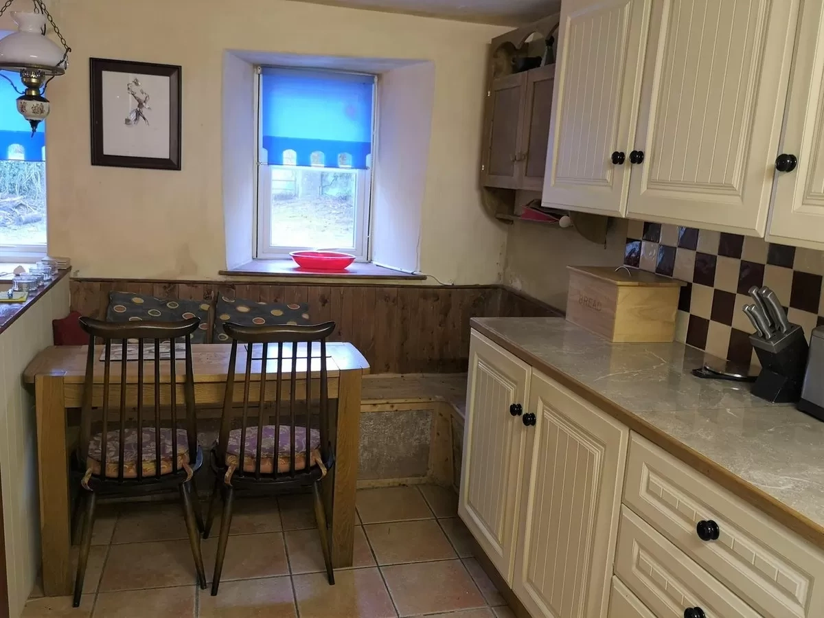 This 100-year-old thatched cottage just outside of Athea village is a very quirky property. It’s been thoughtfully modernised with a small kitchenette and a large living area with a solid fuel stove in the original stone fireplace. It’s got just one bedroom but it might be just what you’re looking for.