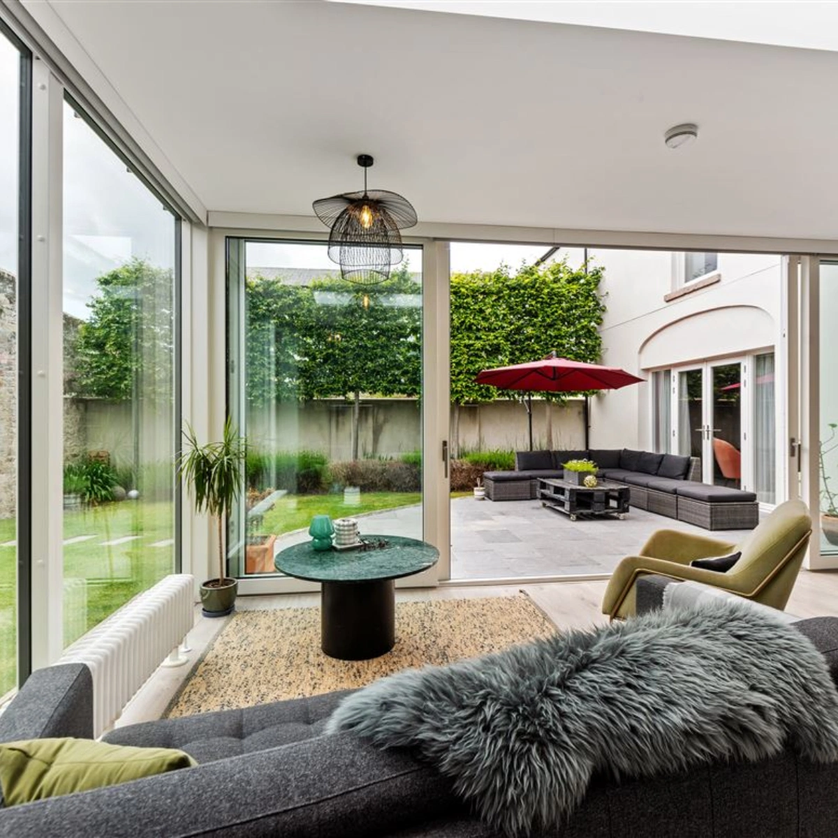 The original Coach House of the Bolton Hall Estate, the property dates back to Georgian times though it was refurbished in 2016 by Dublin-based Ferreira Architects. Ideally located on a quiet cul-de-sac to the rear of the Bolton Park development, the property spans approximately 2,858 square feet and boasts stunning modern finishes set against original period features such as high ceilings, arches and portholes.