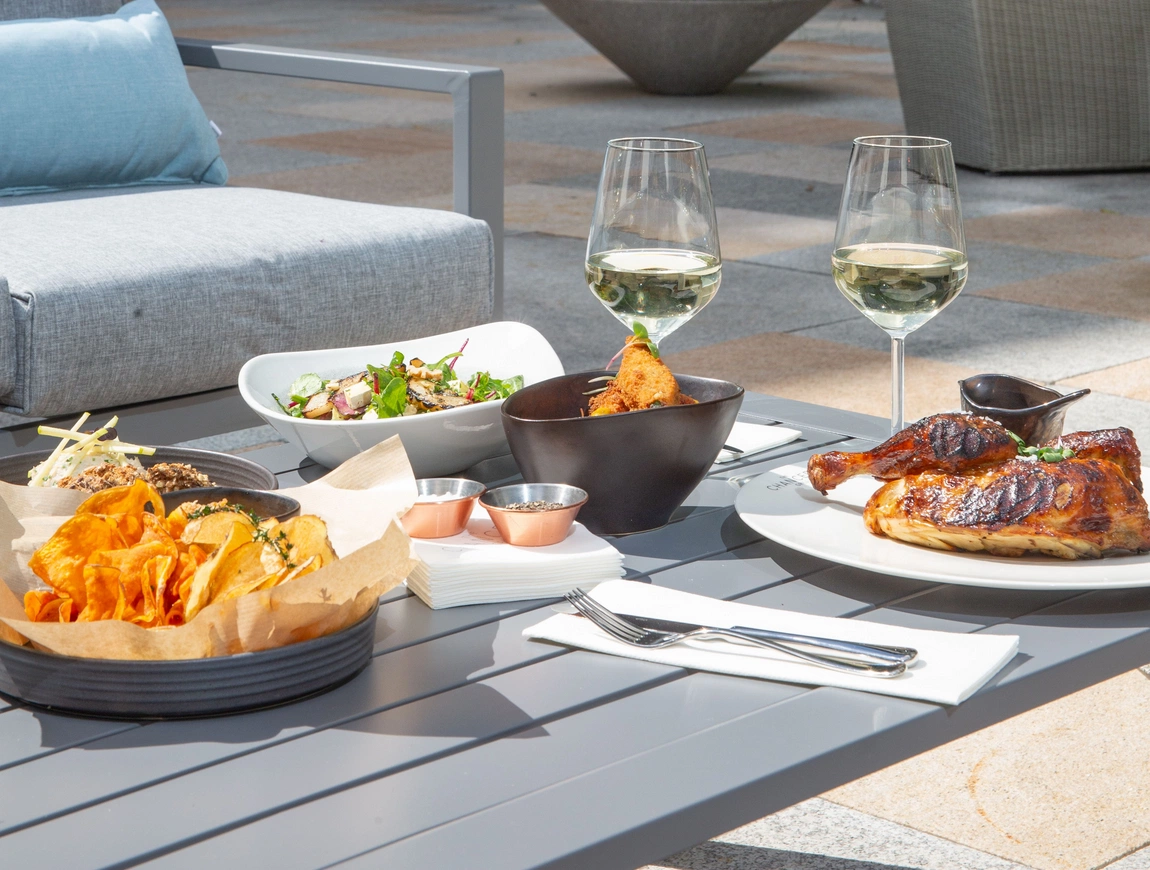 Open for lunch and dinner from 3pm to 10pm on weekdays and 3pm to 11pm on Friday and Saturday, the stylish and relaxed terrace tucked away within the hotel serves a full menu, or you can opt for a Dyflin Kitchen Box giving you all the joys of a picnic experience with none of the fuss.