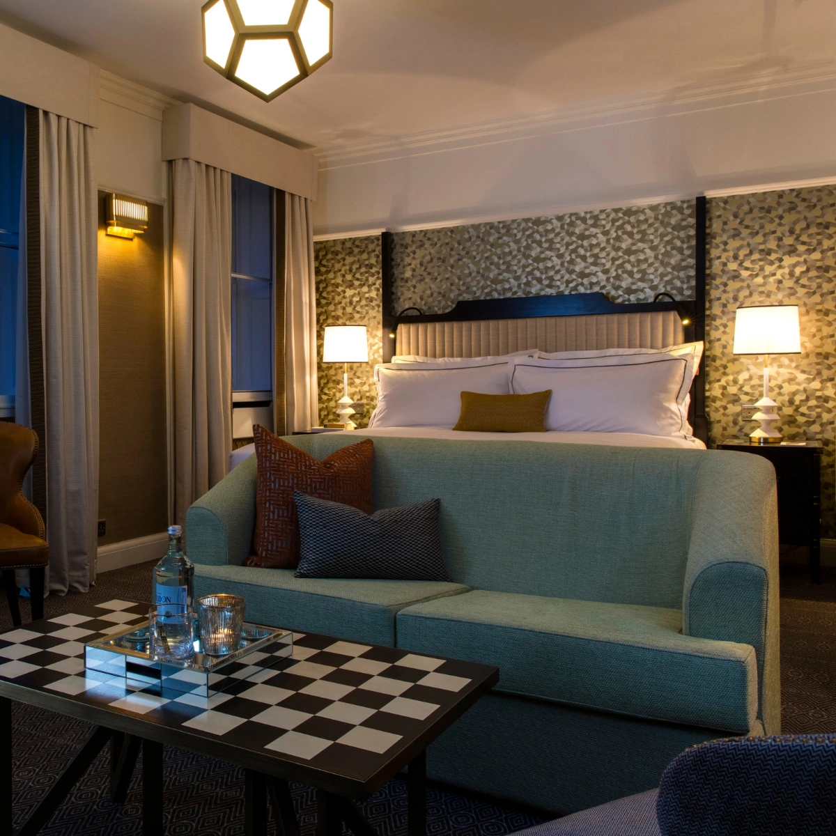 A wander through the ground floor brings you to The Library, a welcoming, book-lined place to sit back and read, sipping on tea, nibbling on some delicious biscuits, and generally letting the world go by. Not far away, The Alchemy Bar offers a richly decorated setting for bespoke cocktails and speciality gins, extending into a bright conservatory that opens onto a secluded courtyard. Here, weather permitting, you can linger over afternoon tea, a fabulous way to spend a few leisurely hours.