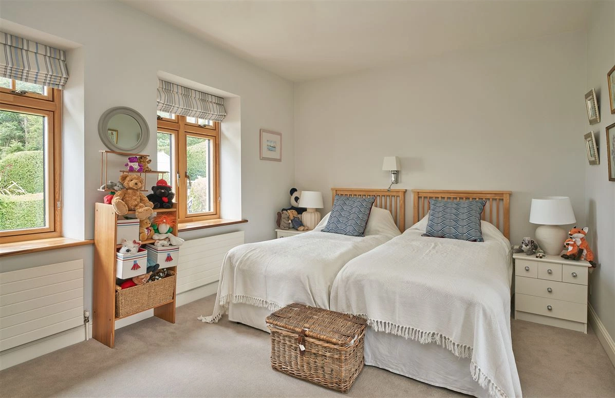 There is also a very attractive summer house, which is a lovely area to entertain and would be an ideal artist’s studio. The large lawn was originally a tennis court, and this — coupled with the woodland area and the meandering pathways — create a haven for all the family to enjoy throughout the year.
