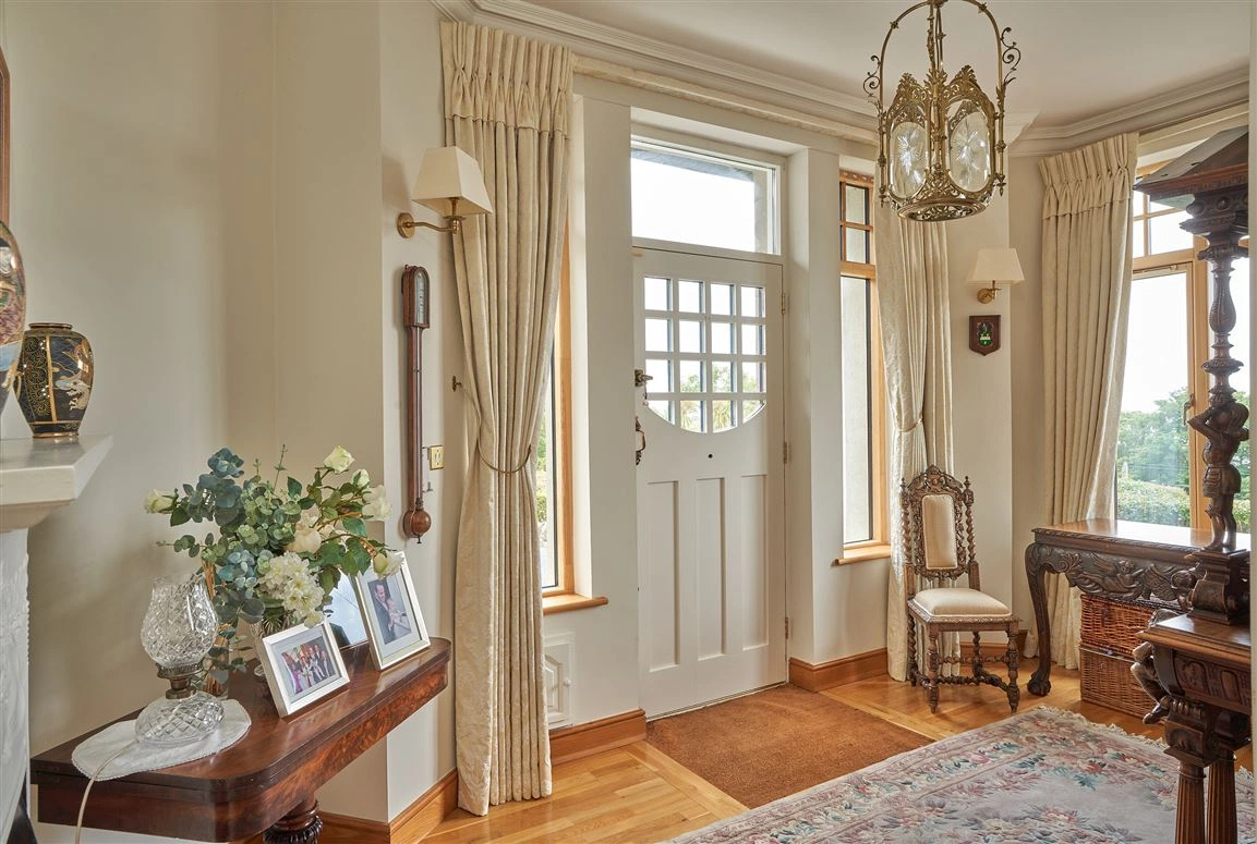 Outside, the entrance and gardens are accessed through iron electric gates just off Old Carrickbrack Road, where there is a large driveway and parking for several cars. The superbly maintained gardens extend to about one acre, and are extremely well stocked with mature trees, shrubbery and colourful azaleas.