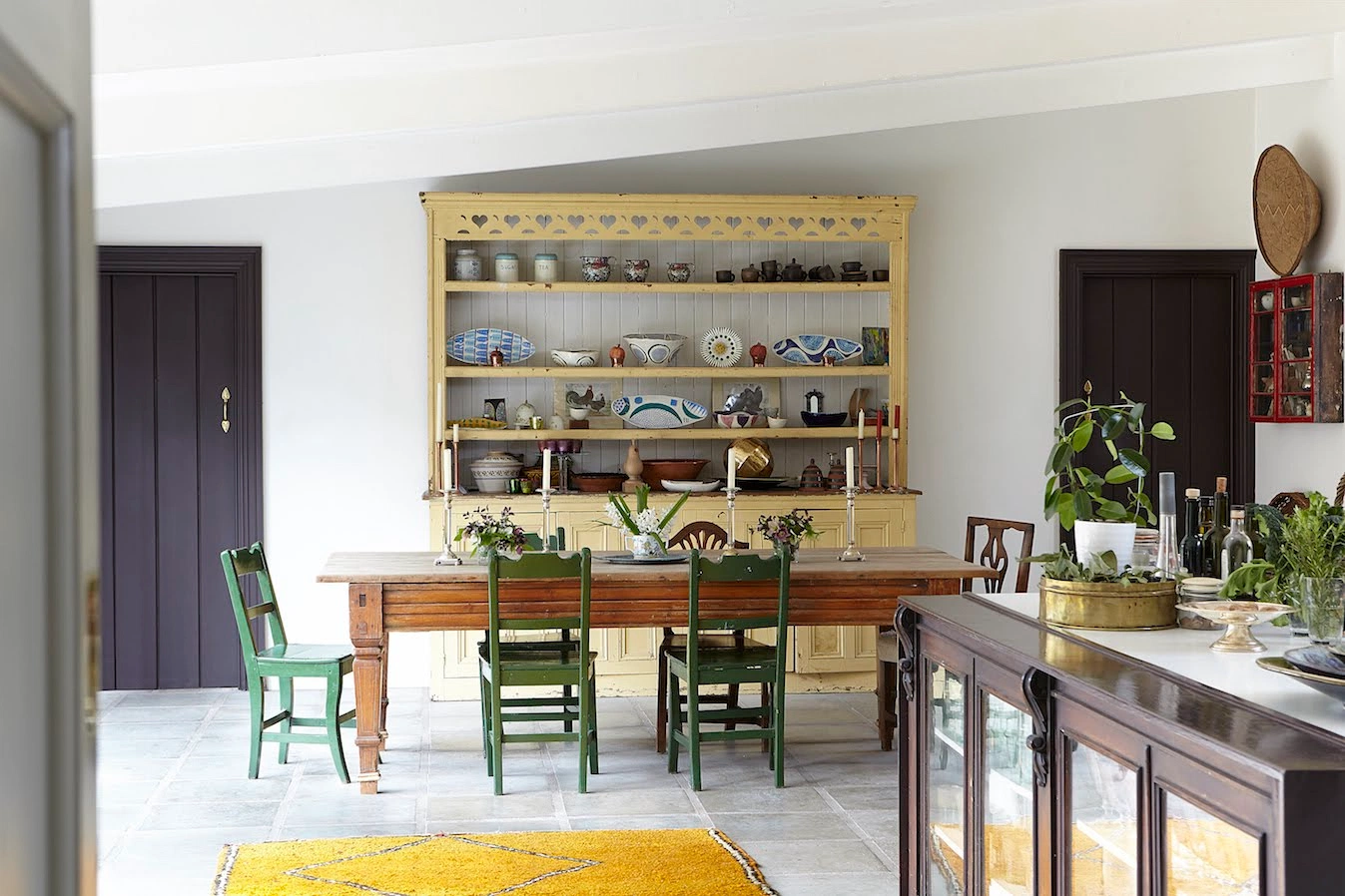 Over the years, he added more features to the structure, filling it with extraordinary vintage finds from his travels, while keeping its original farmhouse feel: “I wanted to introduce more light but I didn’t want to mess around with the fabric of the house.” More recently he added a bright, spacious open-plan kitchen-and-dining area that looks out onto the pretty gardens, where his chickens like to peck and scratch – and where Rory likes to unwind after his cookery classes.