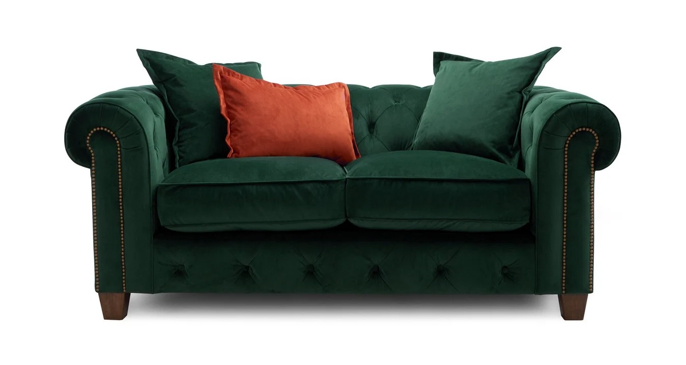 Having a small sofa doesn’t mean it can’t be a luxurious one. A sofa is a big investment and will be the largest piece of furniture in your home after your bed, so either get something that’ll blend in neutral colours and texture, or make a style statement, like with this forest green velvet number.