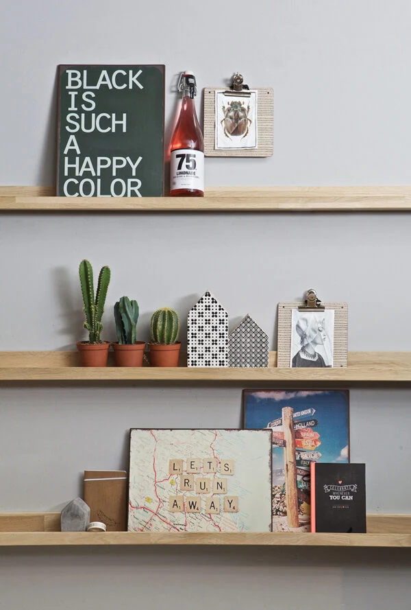 Starting out with a very functional and useful one –a picture shelf. Narrower than your typical bookshelf, it’s ideal for that awkward corridor or above a chair where it won’t block too much light. Fill with your fanciest books facing out, framed art, and little knick-knacks we’re all guilty of collecting over the years.