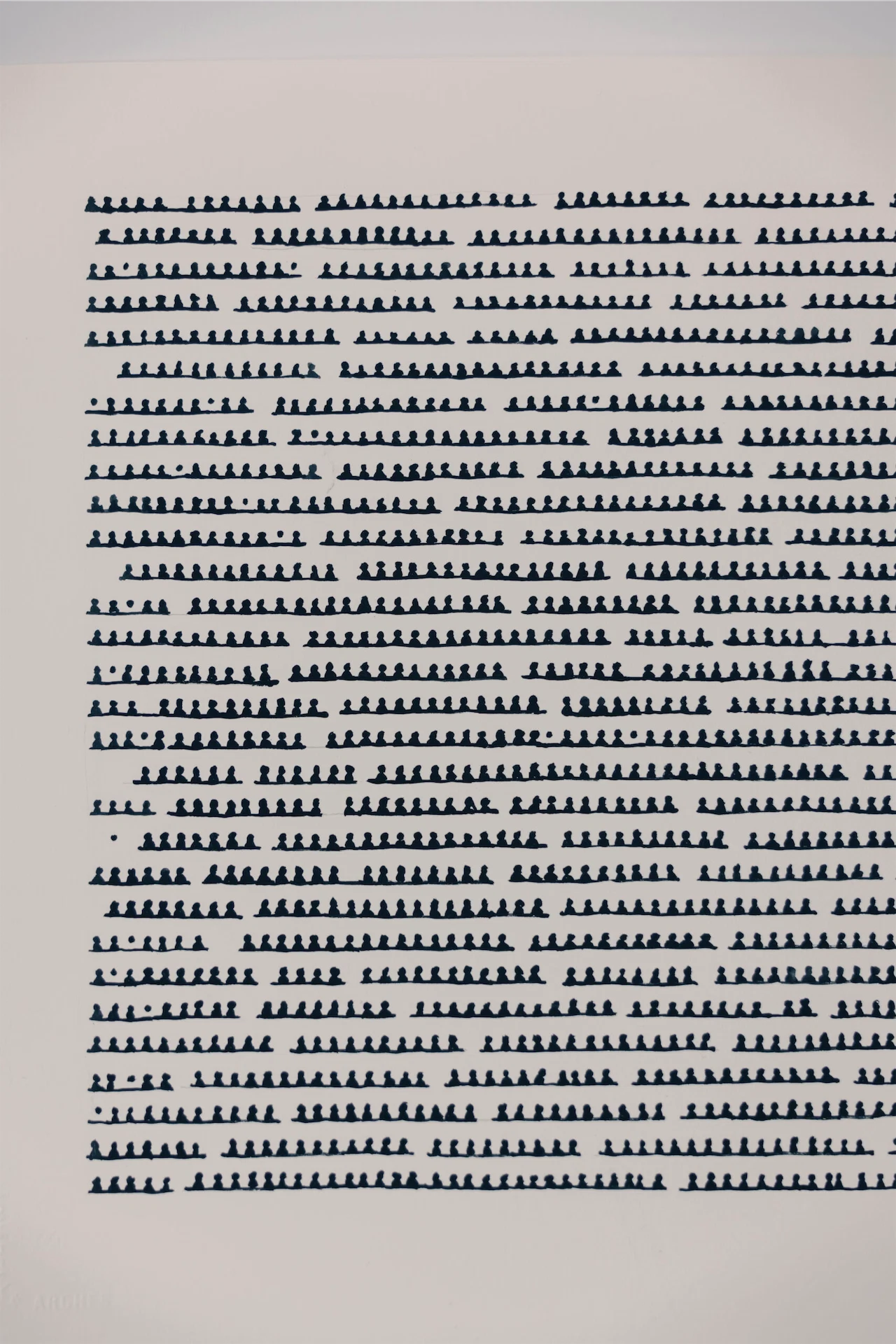 Her first piece, which would become part of the Citizen exhibition shown in the Butler Gallery, began with her researching thousands of images of refugees walking with their luggage. “The scale I used at the time was 2.5cm, so from a distance they looked abstract. I use beauty to entice people to have a look. People literally walk up to the work and they see, ‘Oh my god, these are people’. And it’s important that they are seen as people. They are more than refugees, which is a label.”