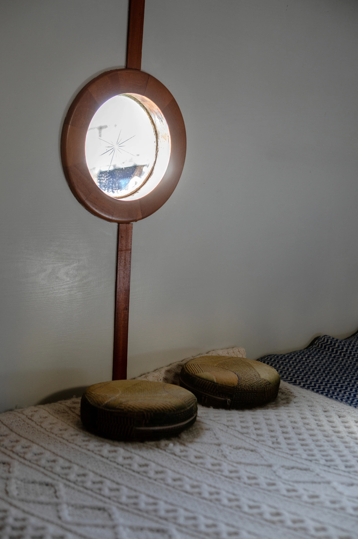 Inside, the effect is almost Tardis-like, with the living room giving way to the kitchen, bathroom, bedroom and engine room. “Everything has a dual function,” laughs Lucy, who tells me that the sofa is also a storage unit and sofa bed, and the drinks cupboard is behind a wall.