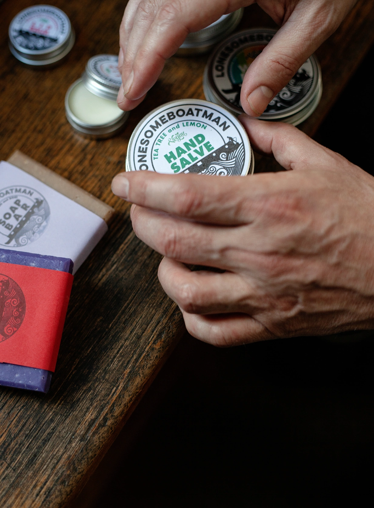 Now Richard runs his business, the Lonesome Boatman, from the boat. A former make-up artist, he makes all his grooming products by hand, using plant-based ingredients and renewable energy. That’s when he isn’t playing his battery-operated guitar.
