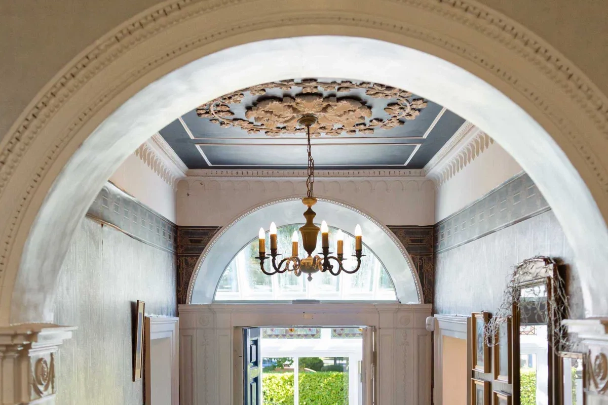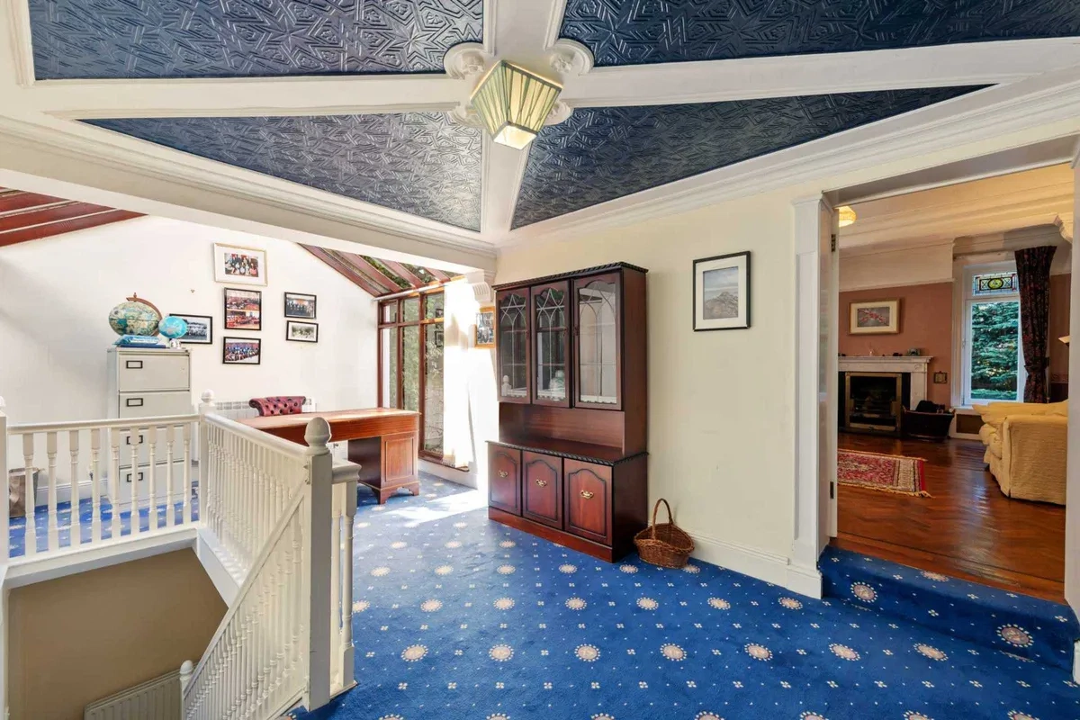 A wide flight of granite steps ascend to the attractive covered veranda and enclosed front porch leading to the front door. The impressive entrance hall really sets the tone for this grand family home with beautiful period detailing and a sweeping staircase ascending to an incredible conservatory with intricately designed stained glass windows.