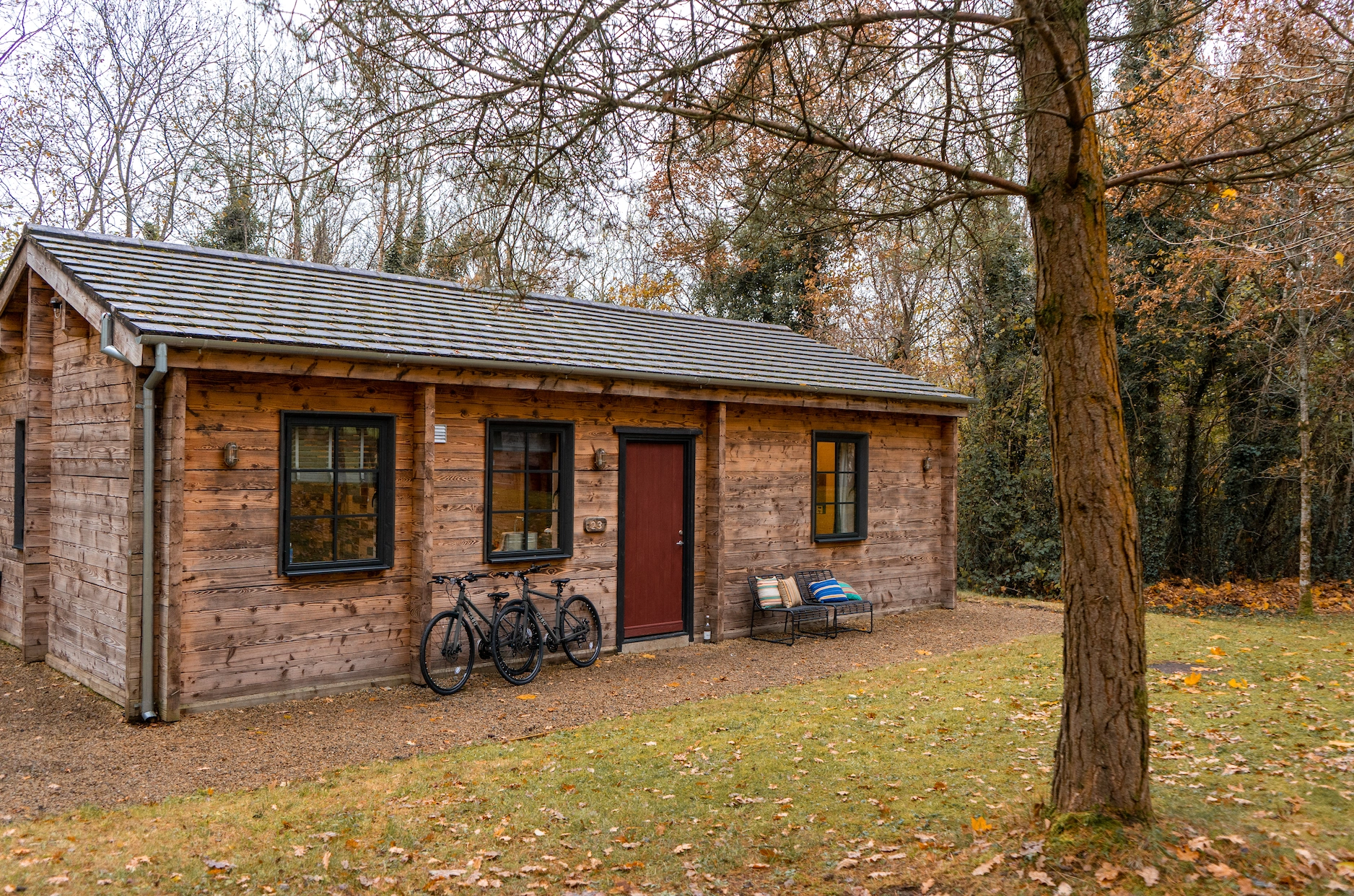Remarkably, even though they resemble contemporary hickster-hipster barn conversions around Hudson Valley NY, these lakeside cabins date back to the 1980s, when they provided popular holiday park accommodation until the foot-and-mouth outbreak of 2002 decimated State forests and all whom vacationed in them. This four-years-in-the-making, multi-million revamp is nothing short of a revelation.