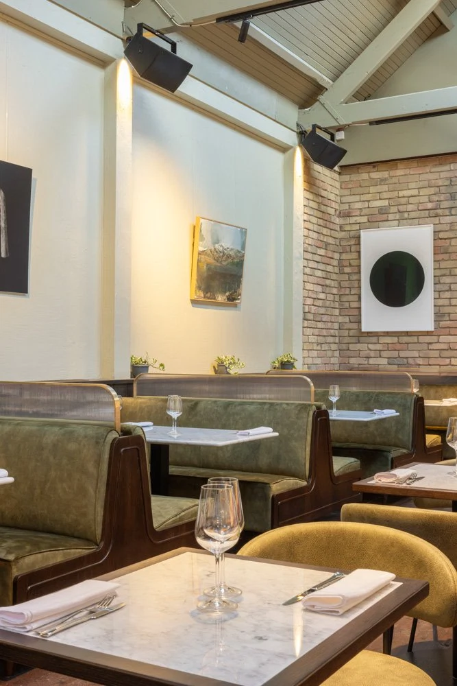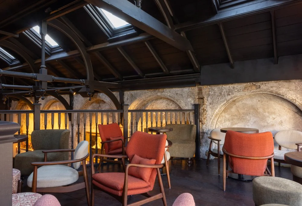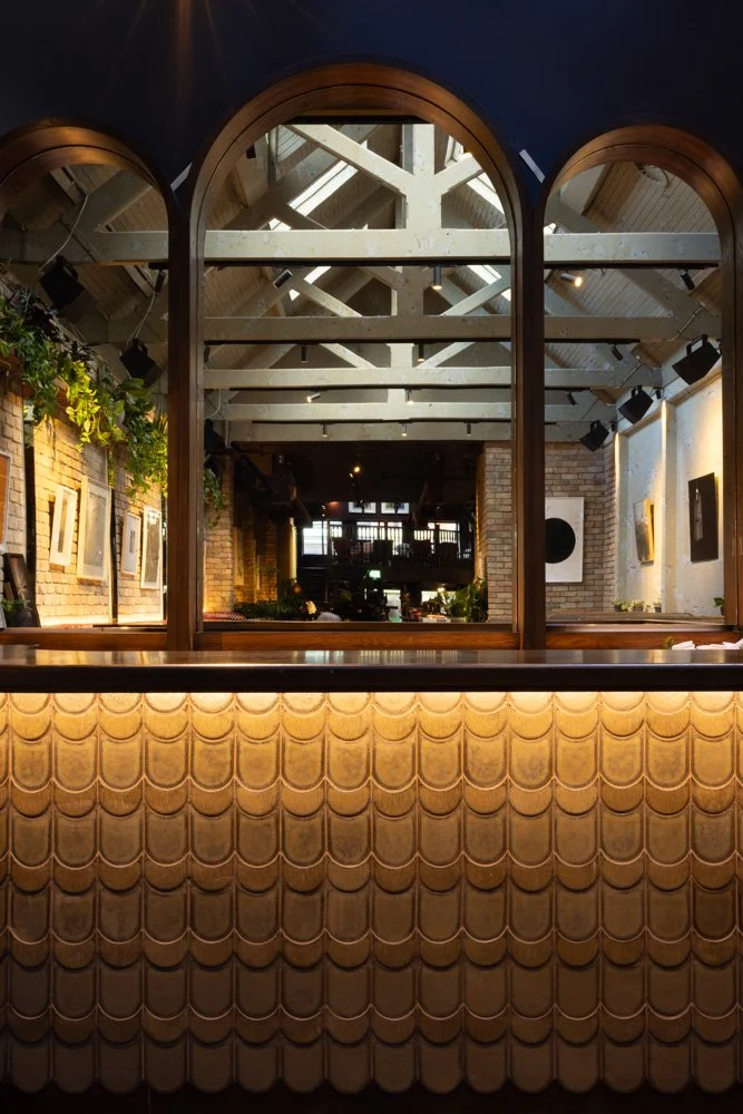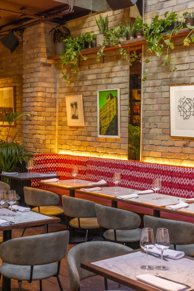 When you step inside, you’re immediately wowed by the space. A long, double-height room, it immediately feels generous and spacious, even when packed with people, and the finishes are super-stylish. Exposed brick, grand mirrored arches and interesting artwork set the tone for a great night, while a mix of seating is plush and comfortable, allowing you to settle in for the night.