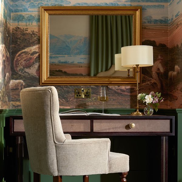 Adding to the hotel’s unique character, the team unearthed two beautifully preserved watercolours in the National Gallery of Ireland, each depicting the serene beauty of Killarney’s famous lakes. These artworks have been rendered as scenic wallpaper in the hotel rooms, offering guests an immersive visual experience that mirrors the spectacular landscapes just beyond their windows.