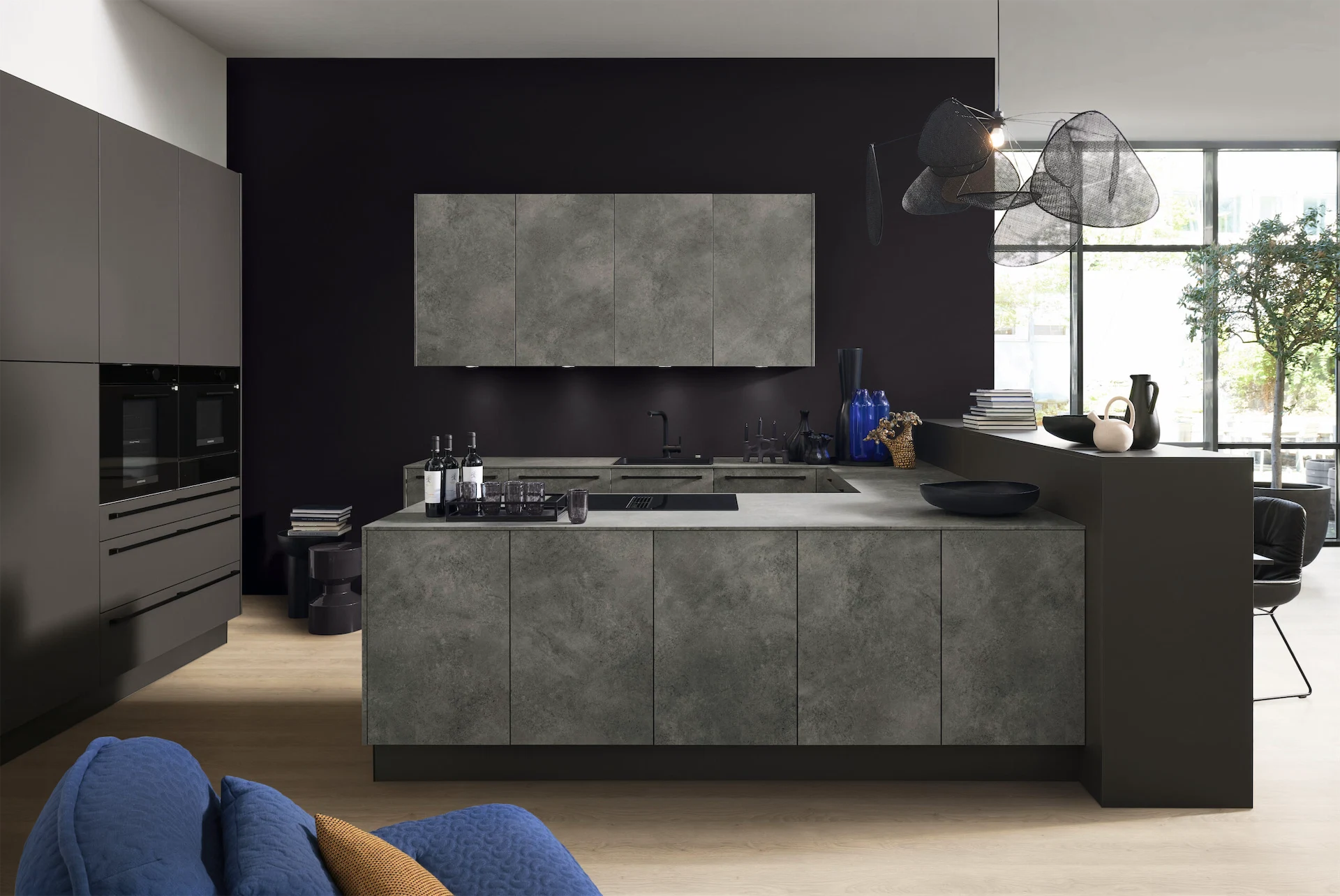 Stone is a material we often see in kitchens, but most commonly for worktops. “Now natural stone front doors have been introduced,” Dave explains. “They have a rougher look, which complements the velvety smooth finish of the worktop perfectly. Another advantage is that fingerprints are invisible on a stone front door.”