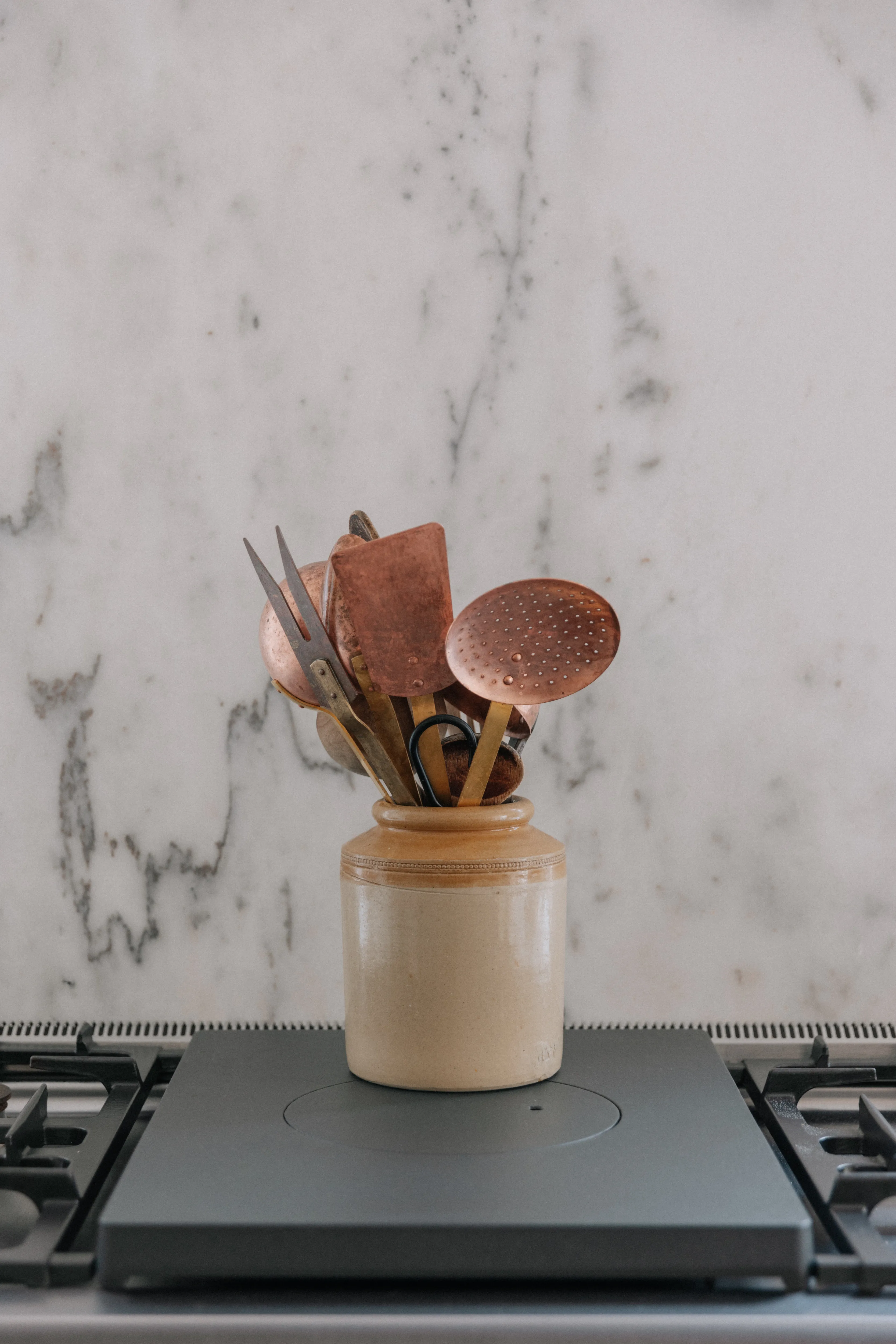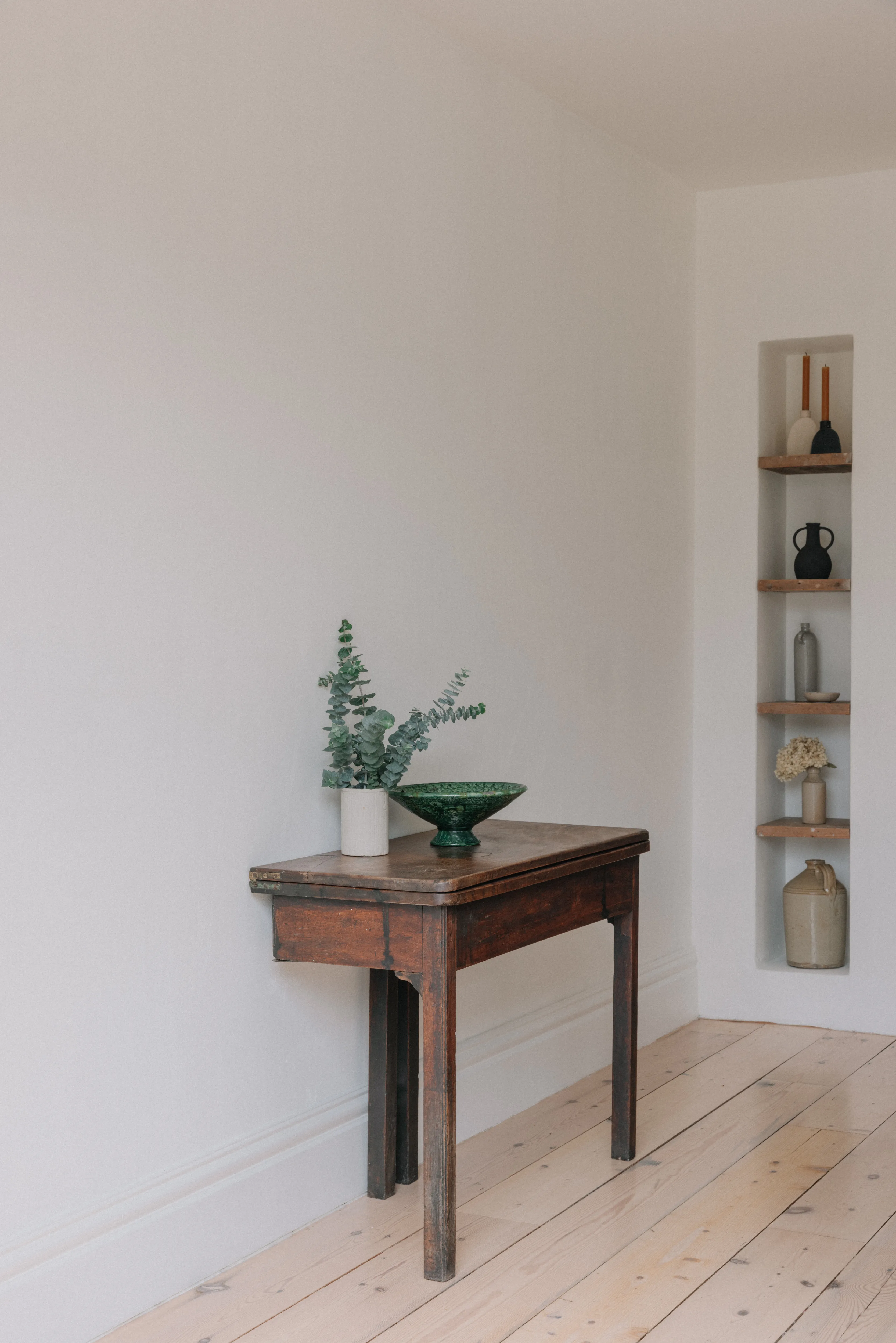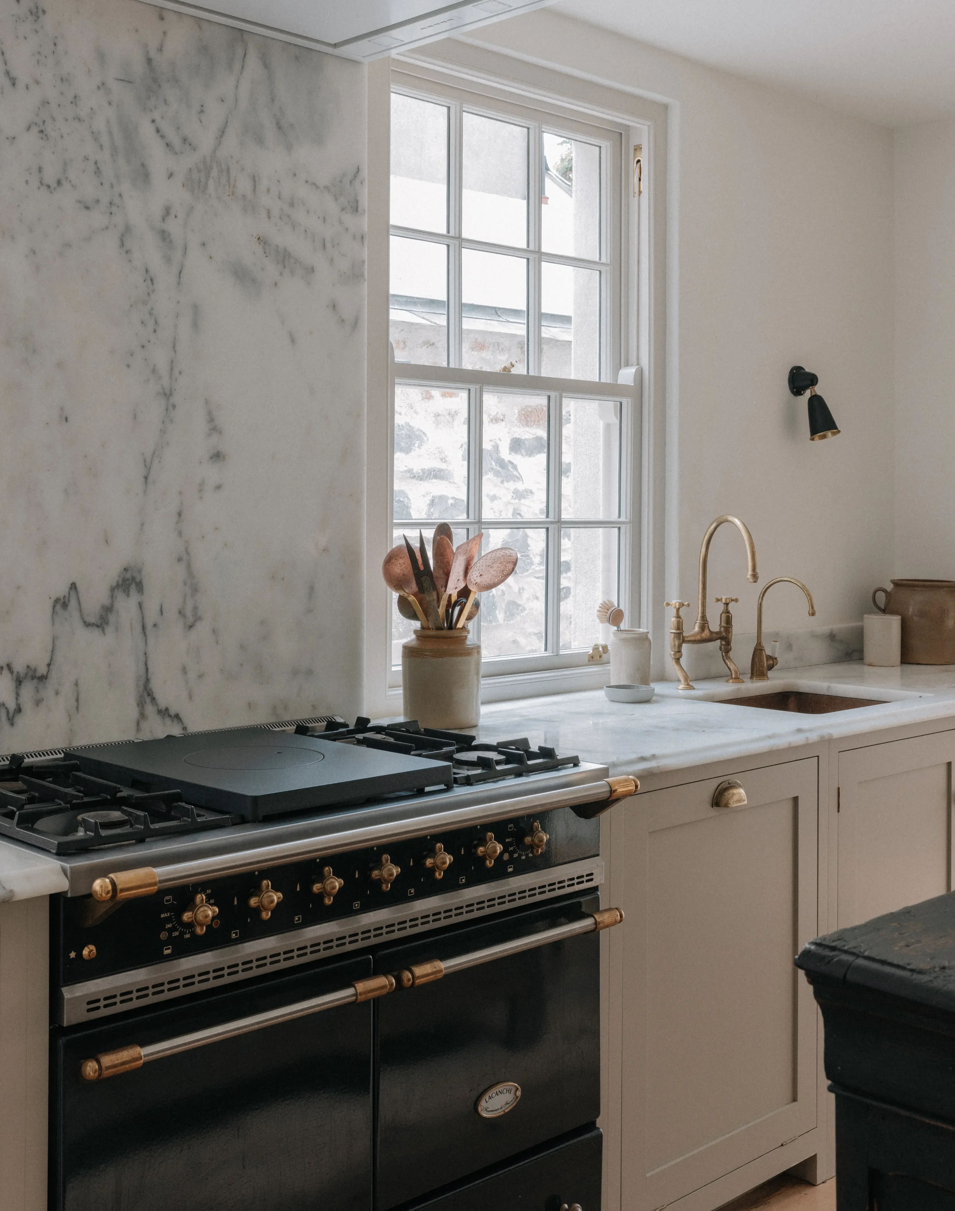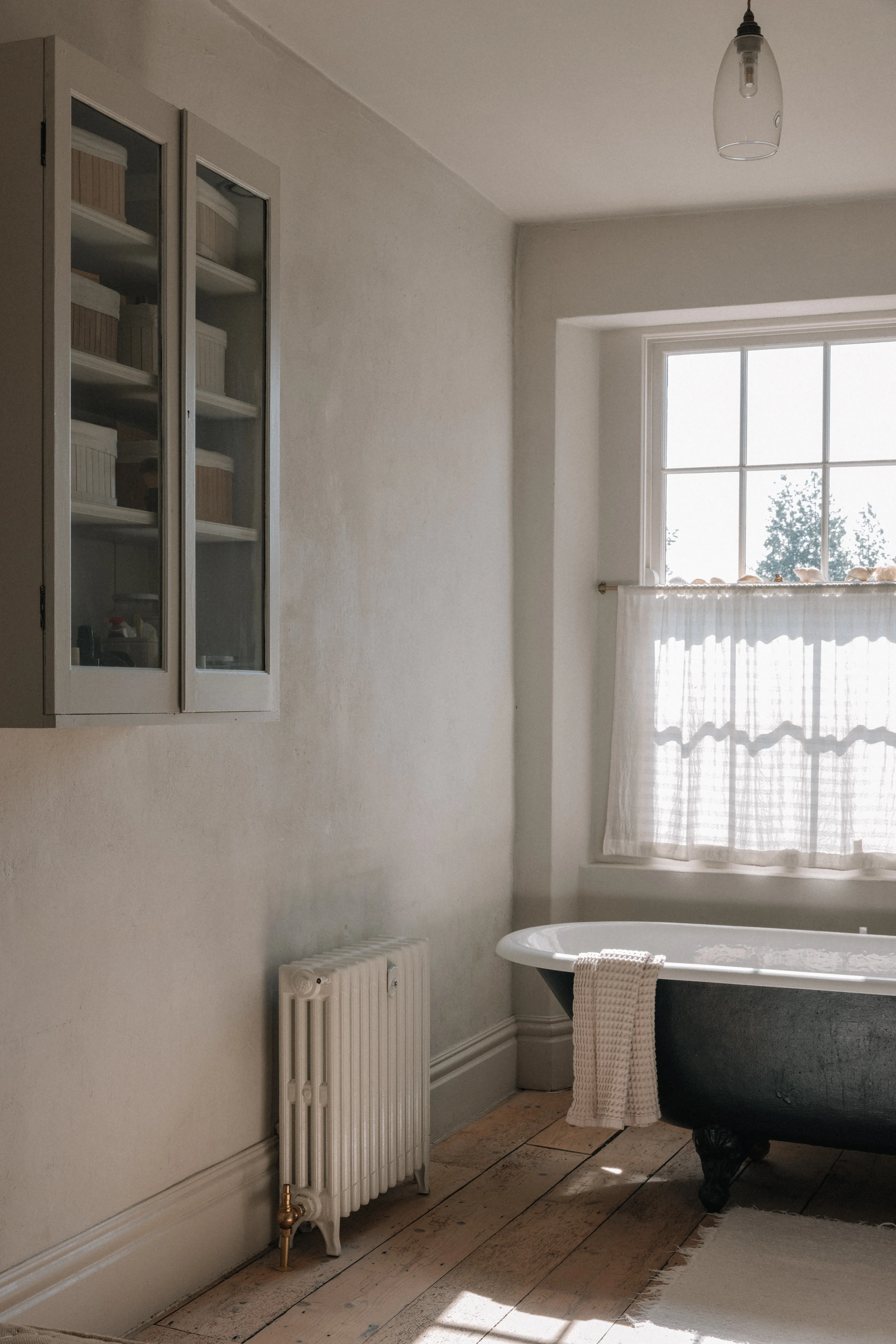 “Every sink, every tap, every handle has a story.” Paying attention to the ordinary things – the sweeping brush, the clothes horse, the light switches – was important to her. “I made all these things tactile so I would enjoy using them. For me, it’s about feel as well as function.” The result is a series of calm, earthy rooms, with a tight colour palette – Farrow & Ball’s Skimming Stone dominates – dotted with antique and vintage finds, some sourced on her travels with her husband to India and Morocco, others from her childhood home in Donegal.