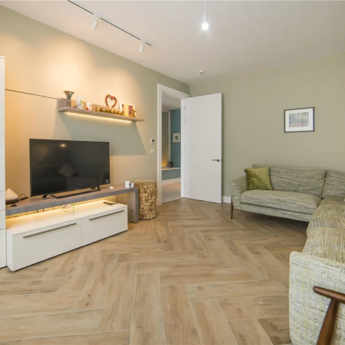 Upon entering, you’re welcomed by a spacious hallway which leads into a variety of well-appointed living spaces. The living room is a bright and airy room with a large window flooding the space with natural light. Further inside is the open-plan dining area and kitchen which has been fitted with sleek cabinetry and boasts ample counter space. The island, designed by Sara Cosgrove and featured on RTE’s Home of the Year, offers both practicality and elegance. Sliding glass doors lead out to the garden.