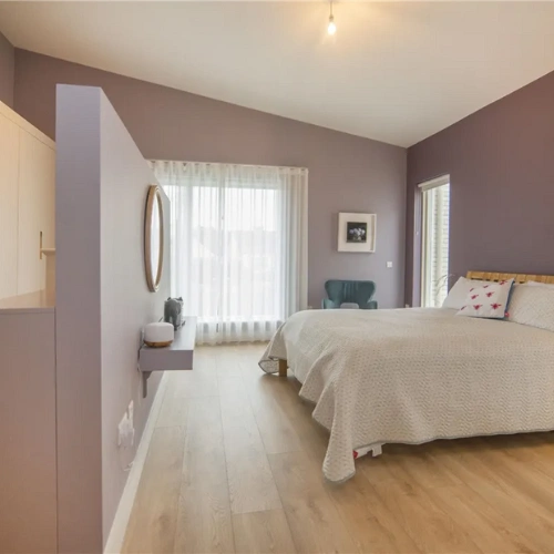 Moving up to the first floor, you’ll find all four generously sized bedrooms. The master suite boasts an ensuite bathroom, along with elegant built-in wardrobes and a private east-facing balcony with beautiful views. The second double bedroom also has its own ensuite while the third bedroom features a staircase leading to a generously sized, fully floored attic storage area. The fourth bedroom includes an office space and provides access to a private, east-facing balcony.