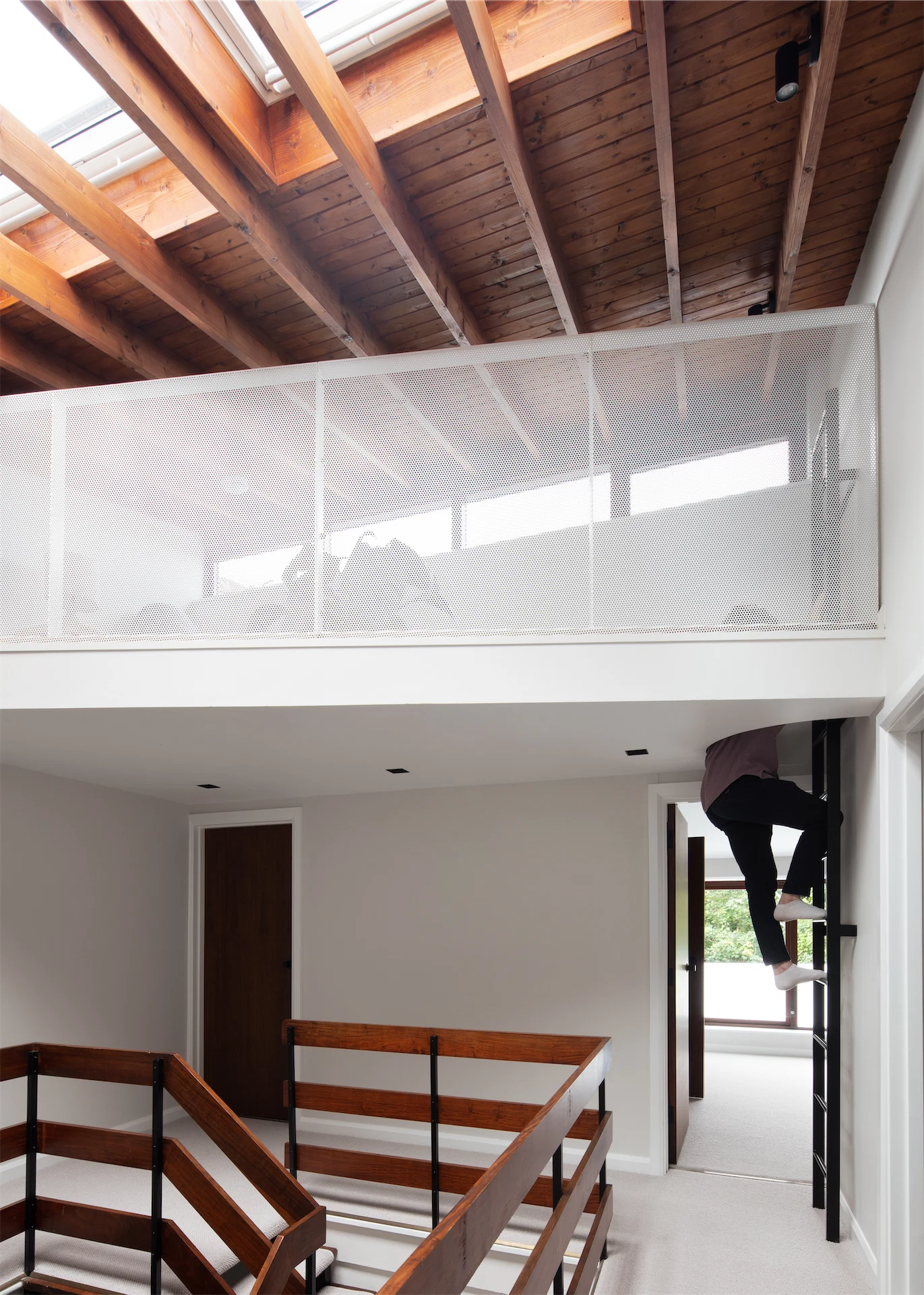 “It’s almost like a treehouse,” grins Stephen. “It adds an element of fun. You climb up the ladder to it and it evokes that cosy feeling of being a kid in a den. I’m happy to hear that it’s used an awful lot. The homeowners are busy people, and after a day of work they might go up there and read a book.”