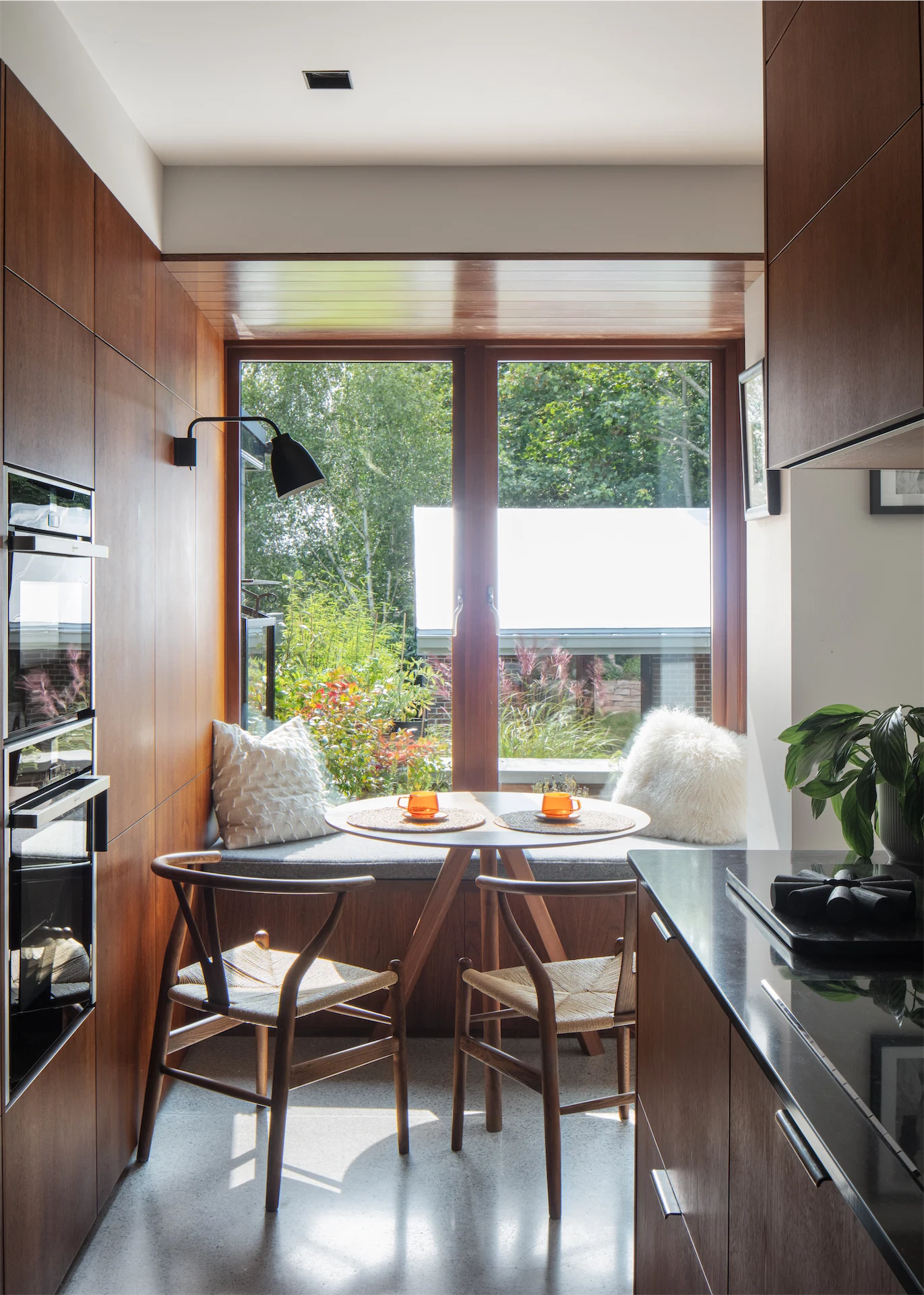 Thoughtful design made the best use of the existing space and ensured it was tailored specifically to the couple’s needs. “I’m not somebody who believes in a spare bedroom or a spare ‘good’ sitting room,” explains the client. “We wanted a personalised home – every room in the house should be for our personal use. Stephen took that a step further, and he created little spaces within the house where you can hide away.” The home is dotted with window seats which act as invitations to pause, rest or simply admire the house from a different angle. “When you’re sitting in that big window seat up in our bedroom, it really does feel like you’re in the trees,” says the client.