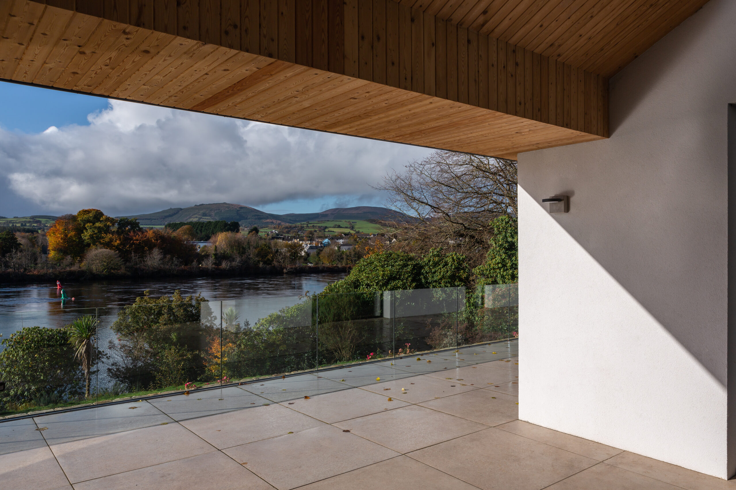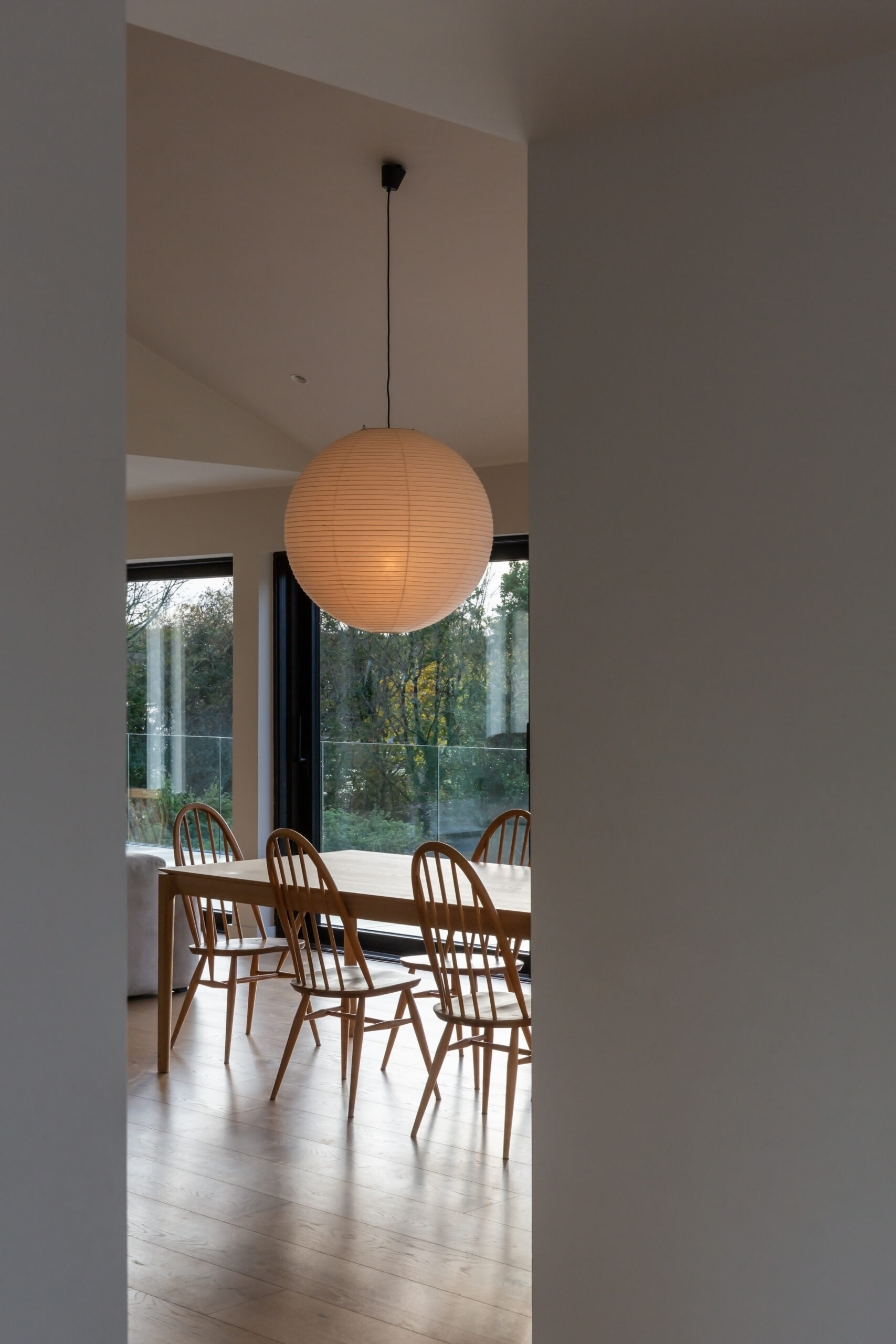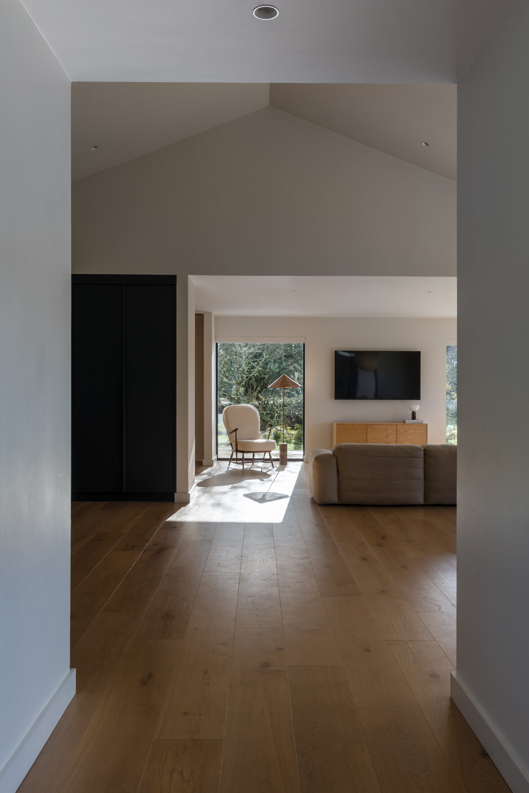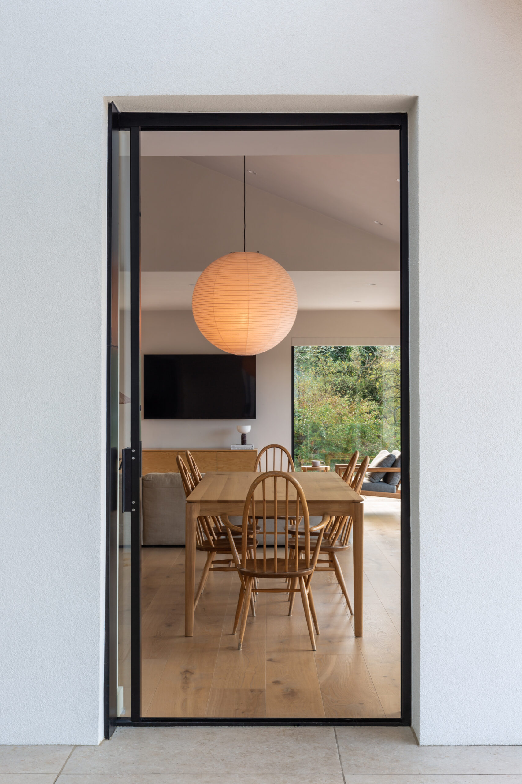 “This project was the refurbishment and extension of a 1970s bungalow along the River Shannon,” explains Rachel Carmody of Rachel Carmody Design. “The original house had a protruding gable, which we removed to simplify the form and emphasise its linear character. A modest 3m extension at the southern end gently lengthens the line while keeping the overall shape intact.”