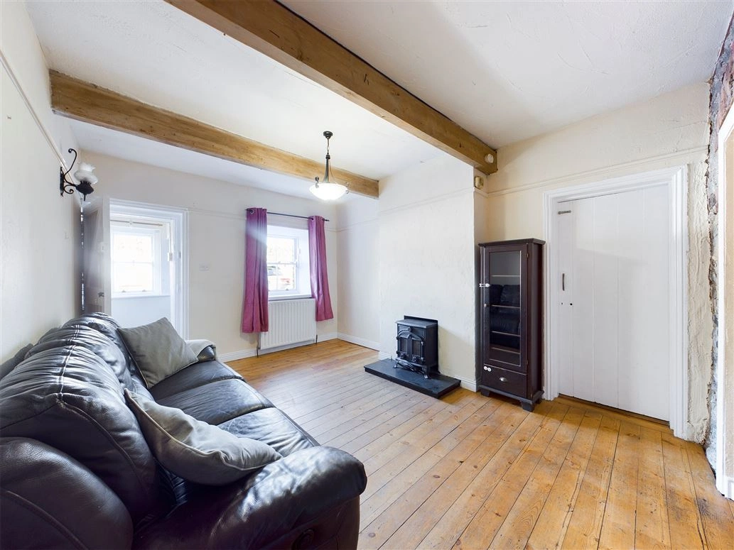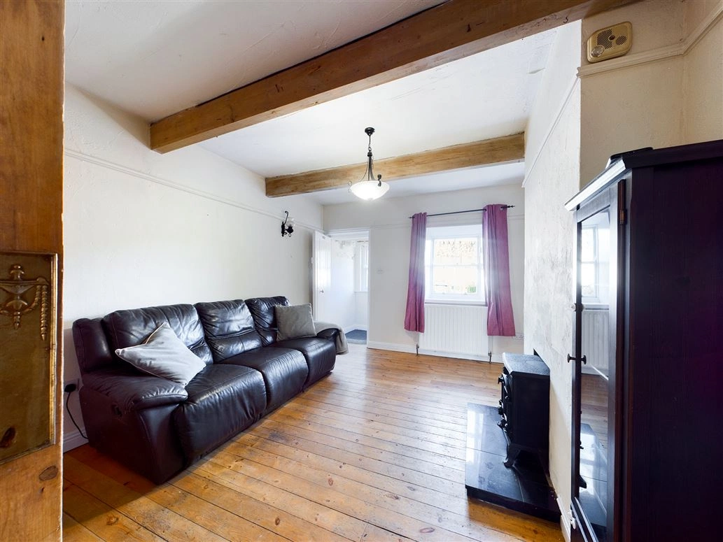 Inside, the accommodation comprises an entrance hall, kitchen/dining area, sitting room, two double bedrooms and a family bathroom. The sitting area is a large open-plan room with a small stove sitting against one wall. Exposed beams, warm wooden flooring and a feature stone wall are the main focal points in this room – the perfect space to host guests this festive season.