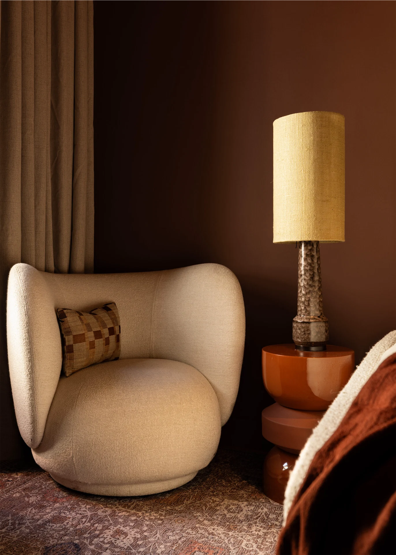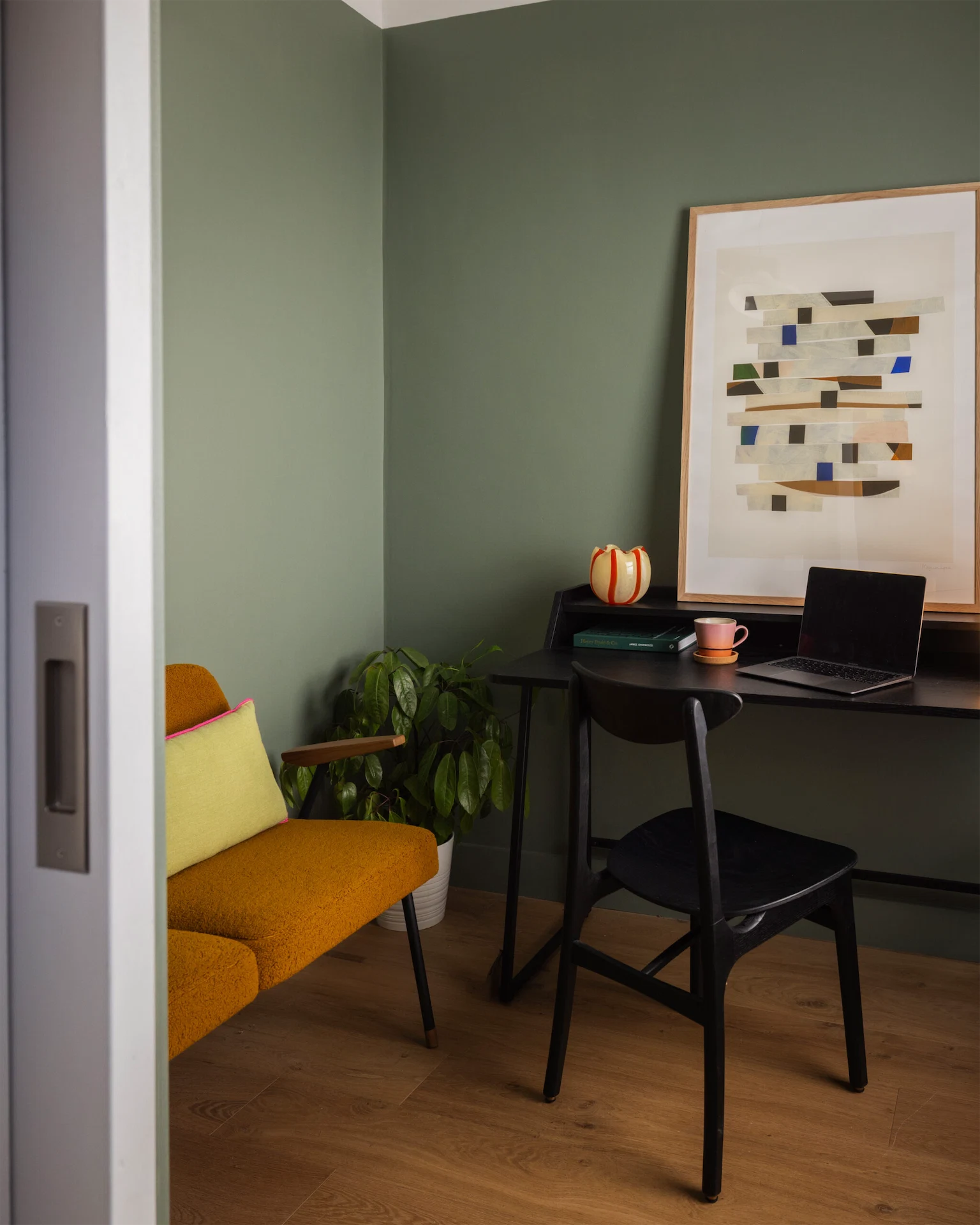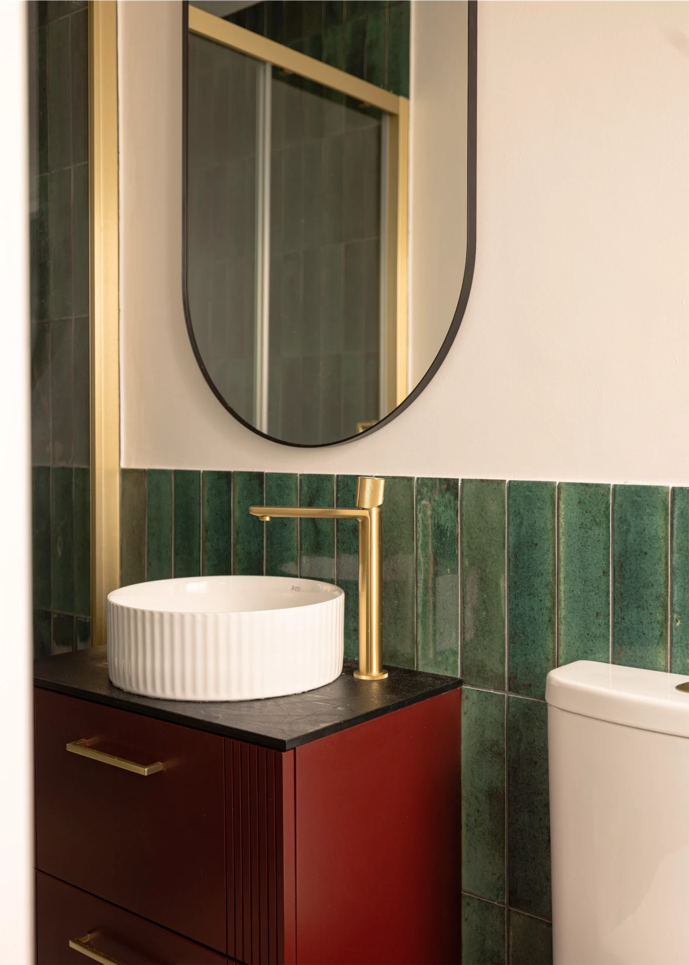 “Overall, we introduced colour to help define and break up each space of the home – the contrast in colours sparks intrigue when travelling through the home. A variation of considered materials (oak, braided rattan) help create more textural depth throughout each space of the home.”