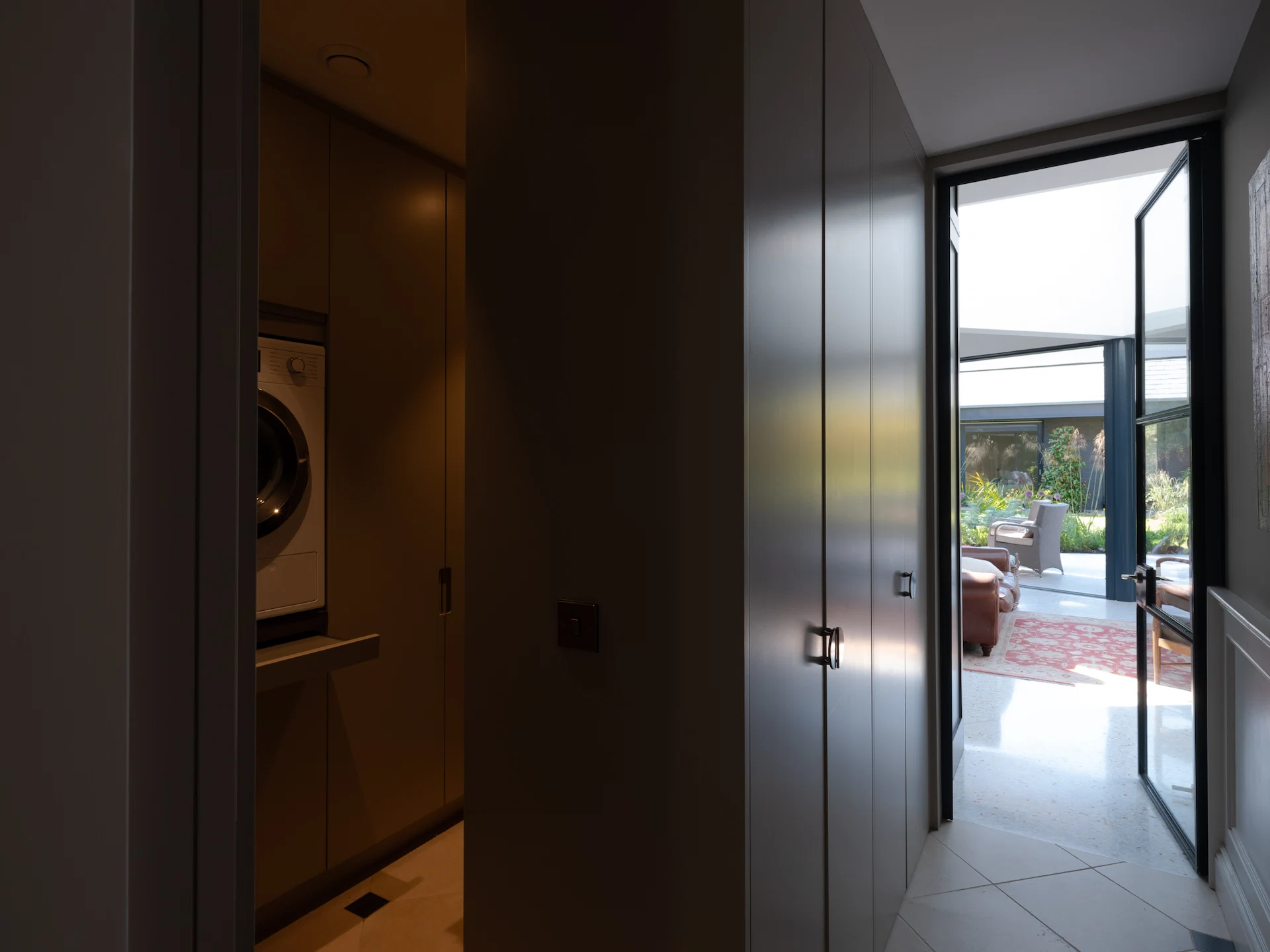 Storage was key to this part of the house, and utility rooms and bathrooms were made the most of to help keep the main spaces clear of clutter. “Over the course of the build, our approach to the existing house changed, allowing it to develop an identity distinct from the new build elements. This allows the house to read as something with its own logic, adjacent to the extension rather than being over-shadowed by it.”