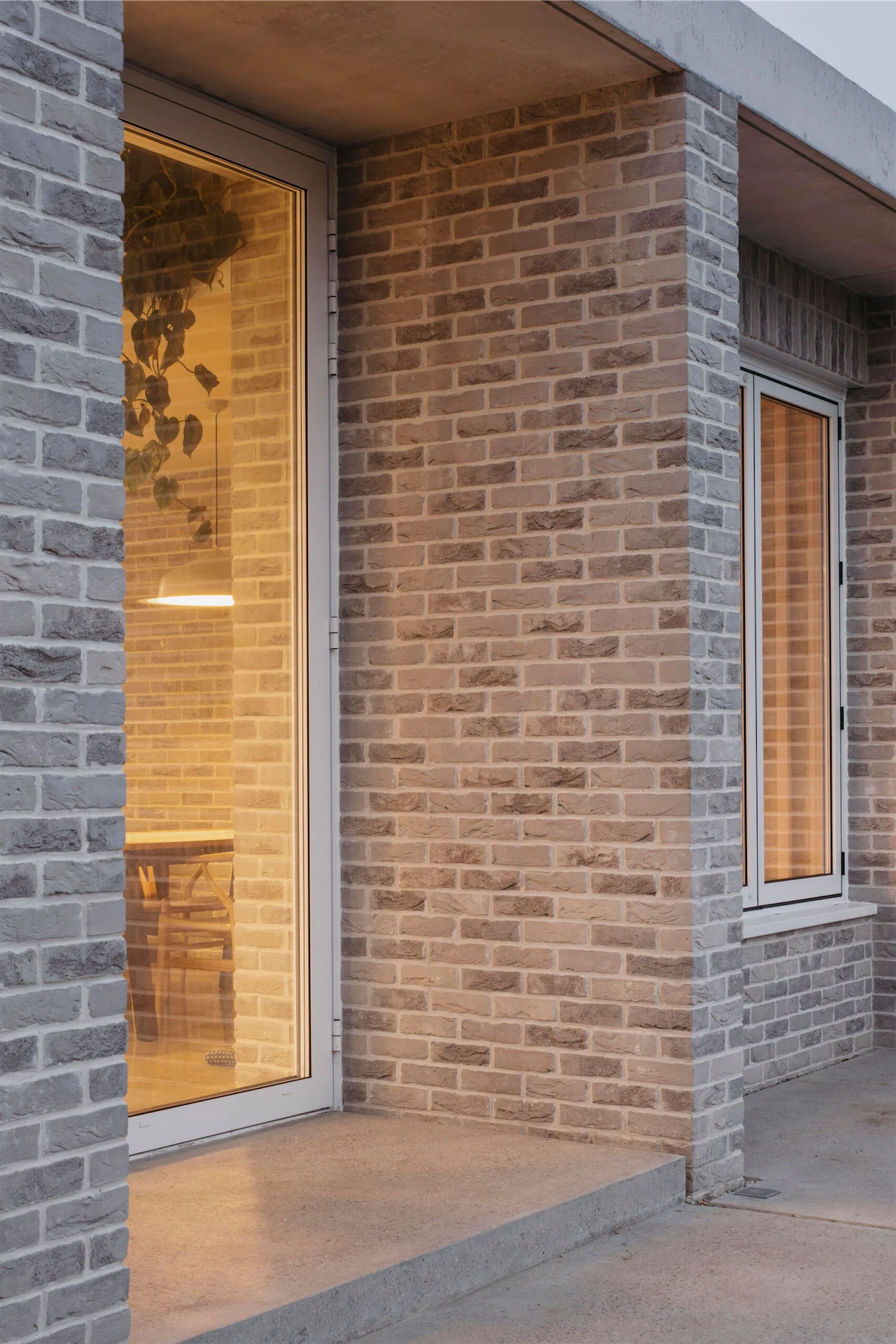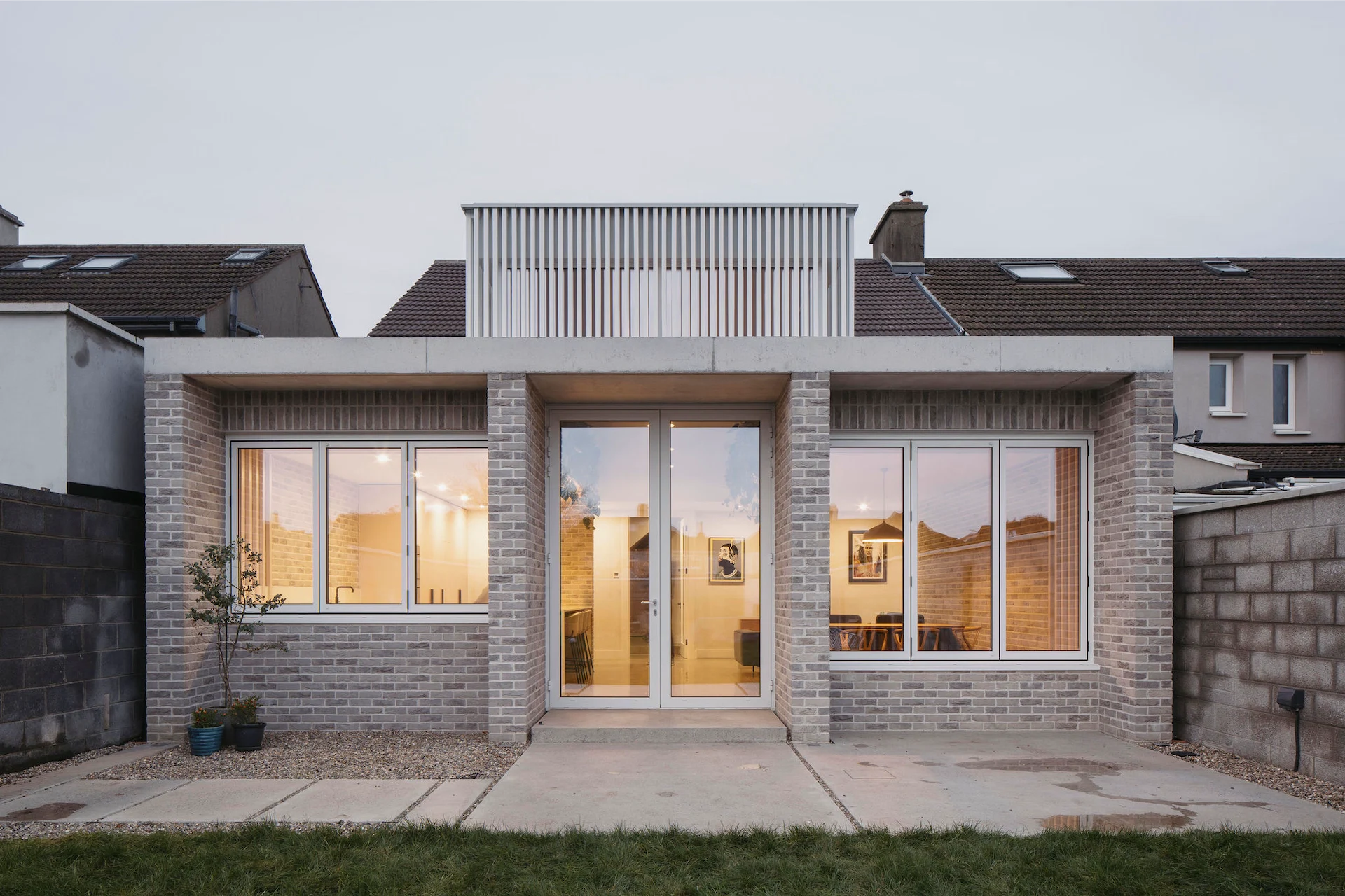A robust brick framework grounds this extension, while a lantern-like pavilion opens the home to light, garden and volume.