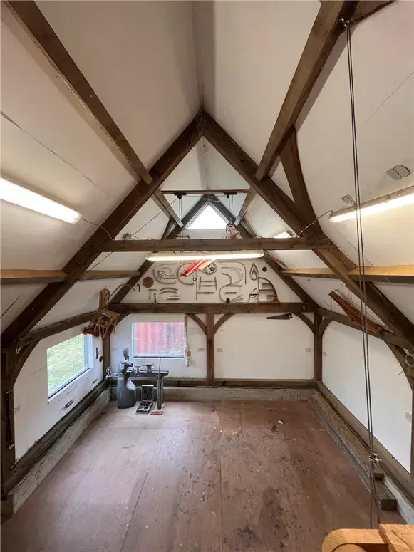 Externally, the grounds are a true highlight. Set on approx. ¾ acre, the gardens have been designed with equal care and intent, from the flourishing orchard and native wildflower meadow to the expansive lawns that surround the property. There is a seamless link between the interior and the outdoors, while a large Danish-style workshop provides outstanding potential for a creative studio, workspace or further accommodation (subject to planning).