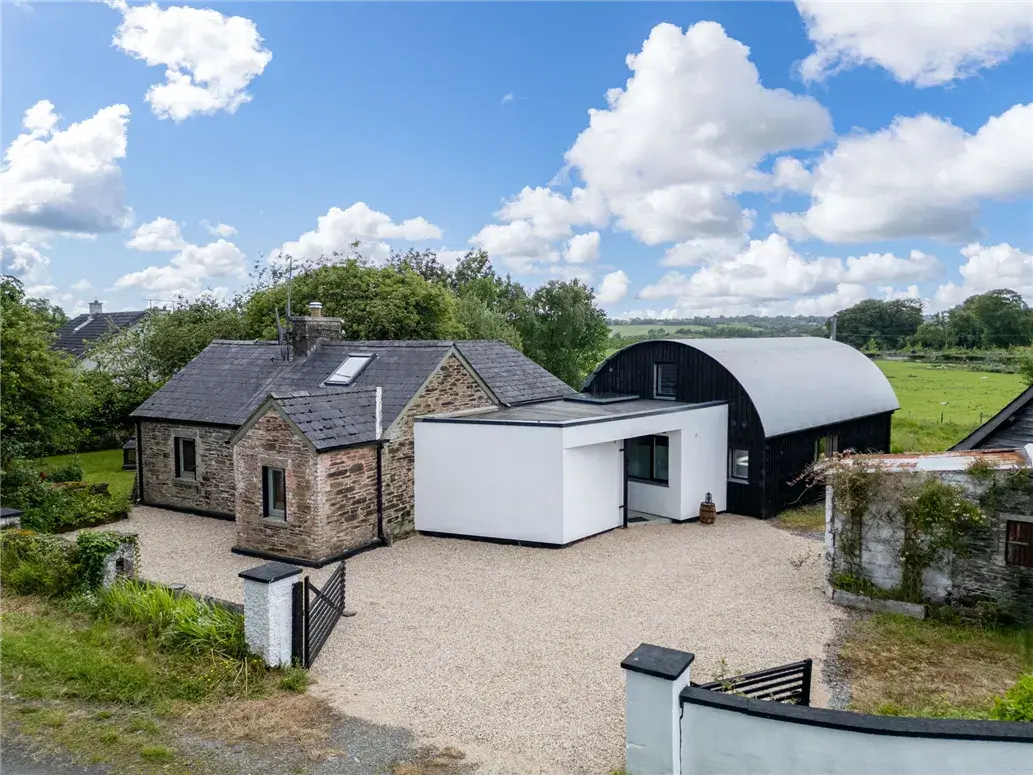 Set in the idyllic countryside of Hollywood, Wicklow, within an hour of Dublin, this beautifully restored stone-built cottage, with its barn-style Quonset extension is a masterclass in thoughtful design and timeless appeal.