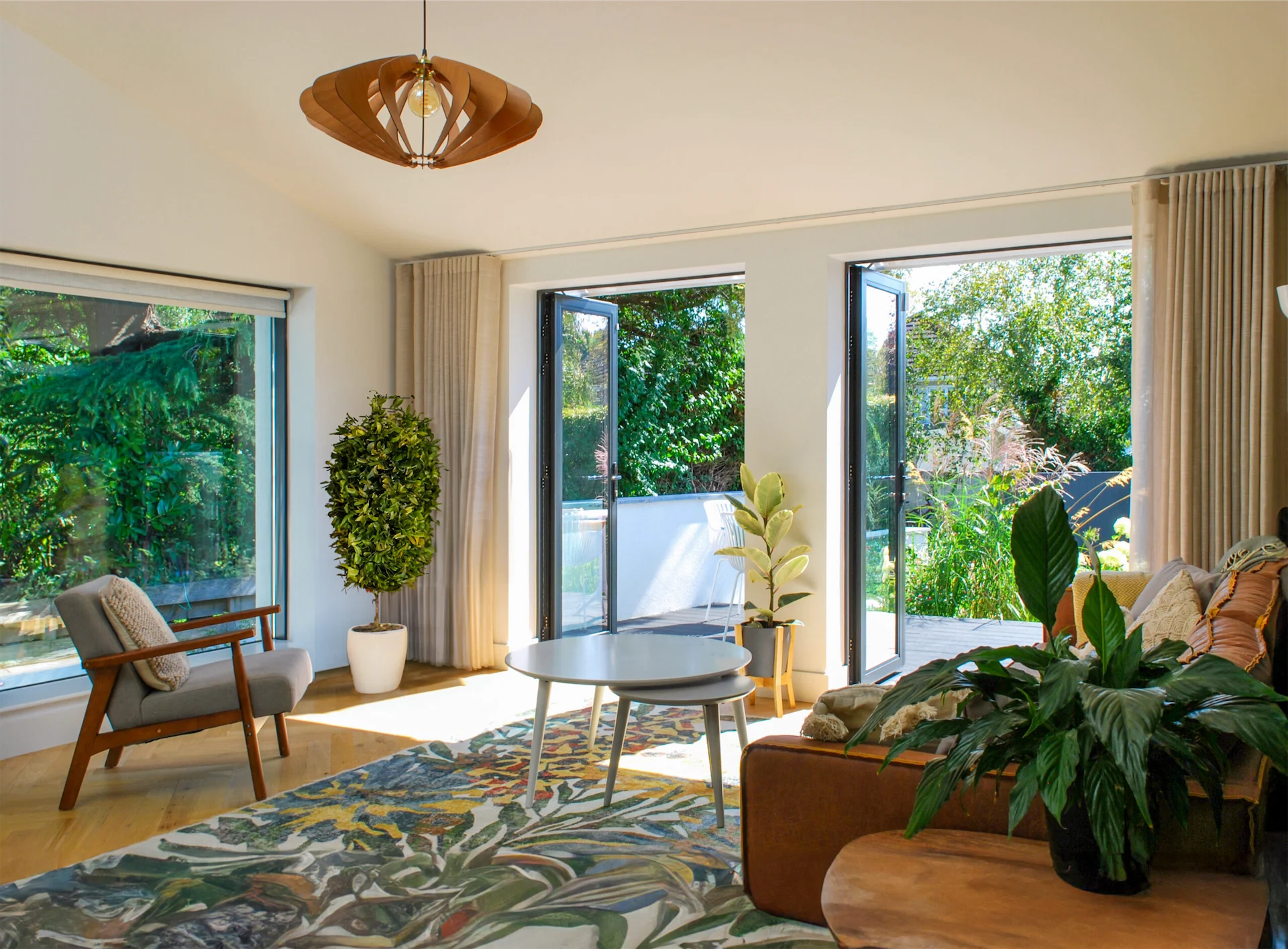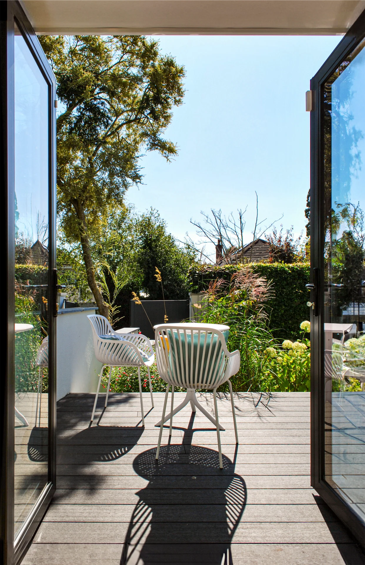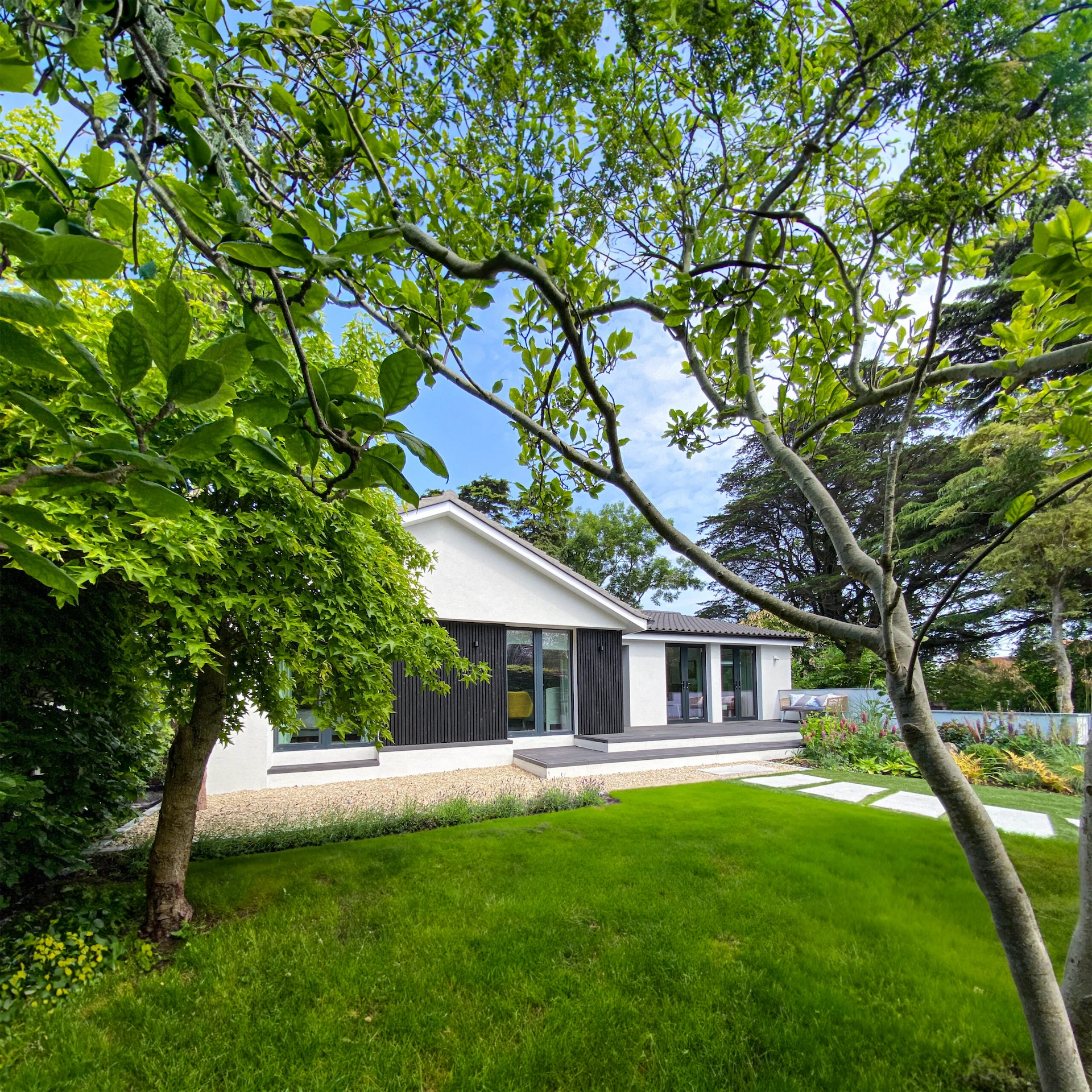Overall, it’s a hugely successful project, showing how relatively simple changes can transform a space. “The finished spaces are filled with natural light, creating a bright and airy atmosphere,” David says. “With wide views of the garden on both sides of the main living spaces, you feel like you’re in a covered garden room that just spills outside when you open the doors. The rest of the house maintains this strong connection to the outdoors, with refurbished bedrooms opening directly onto the front patio, ensuring a continuous link to the garden and the natural environment.”