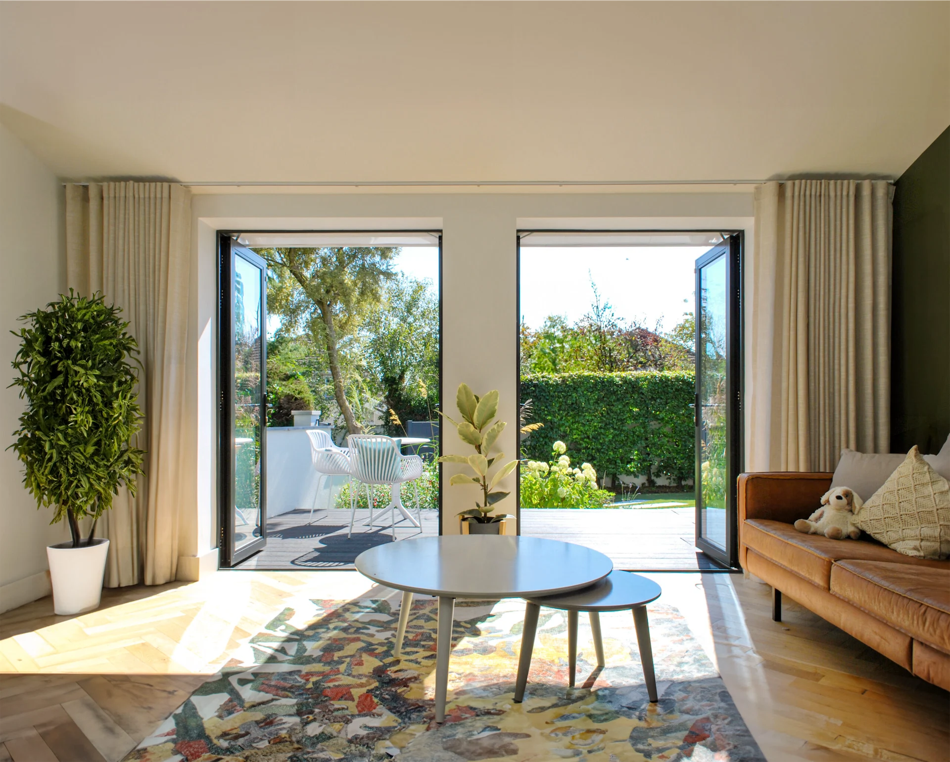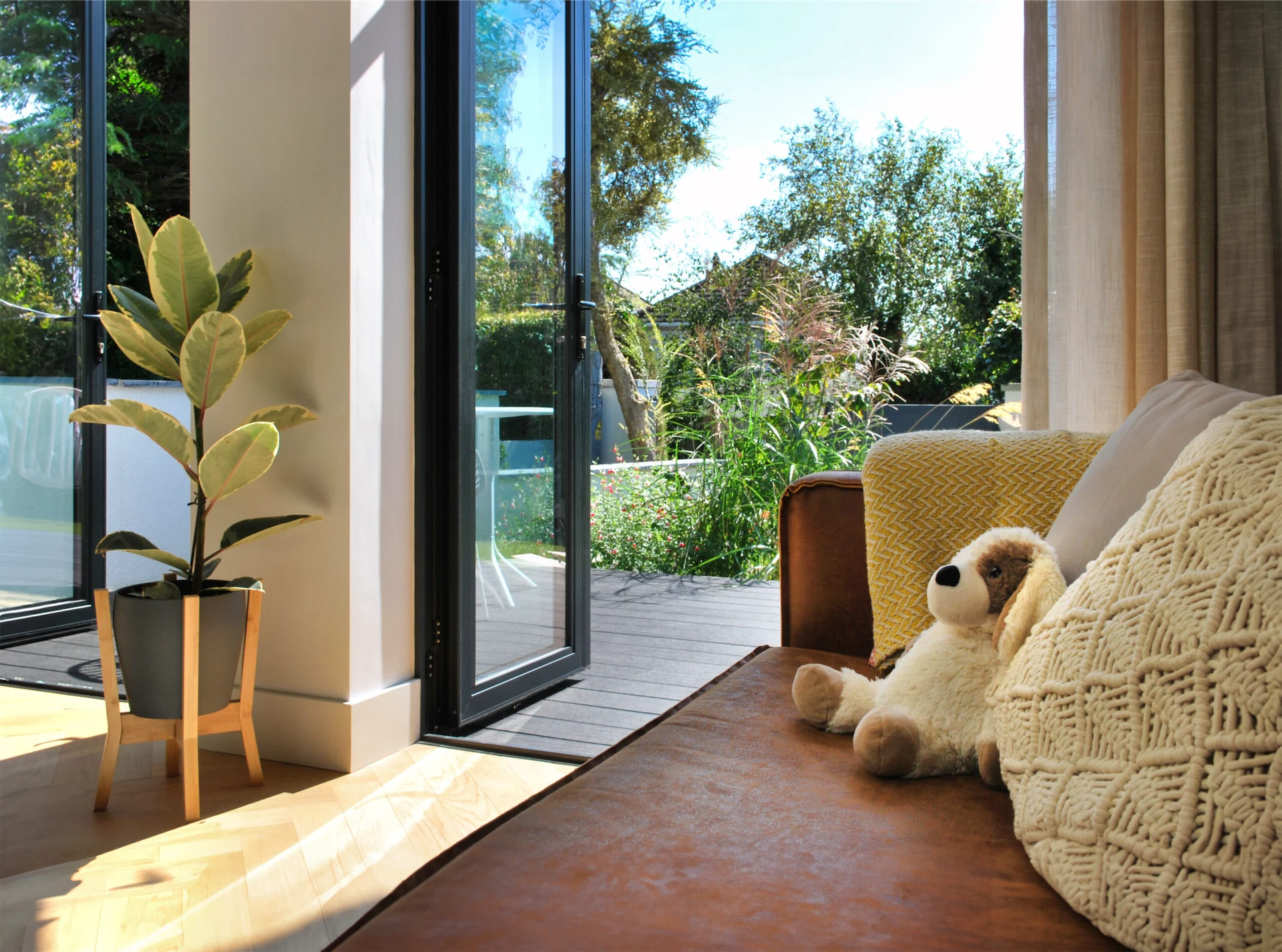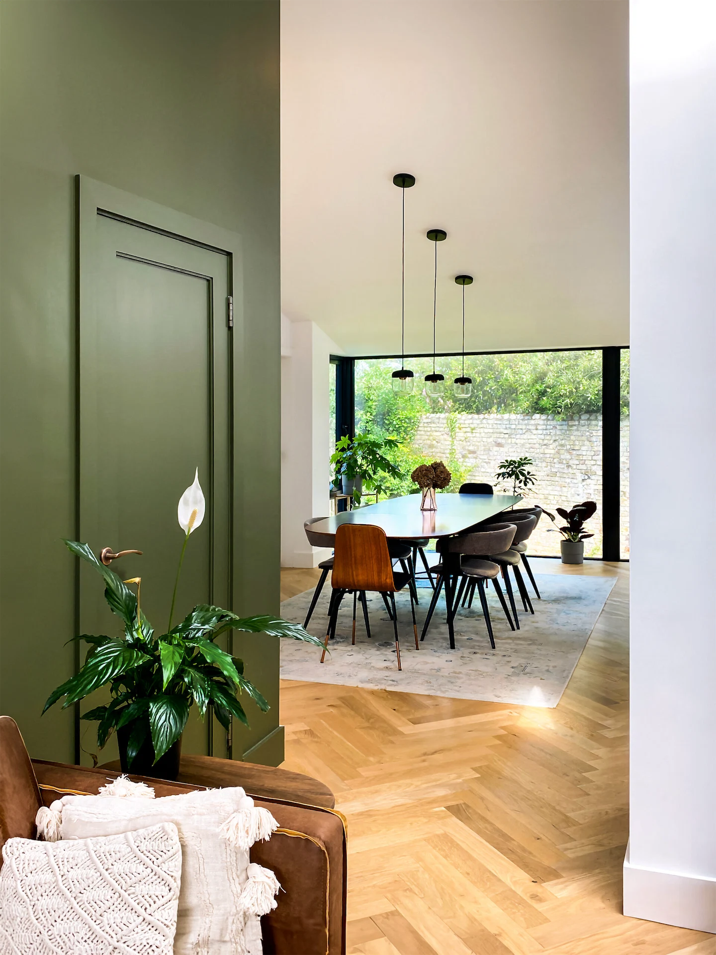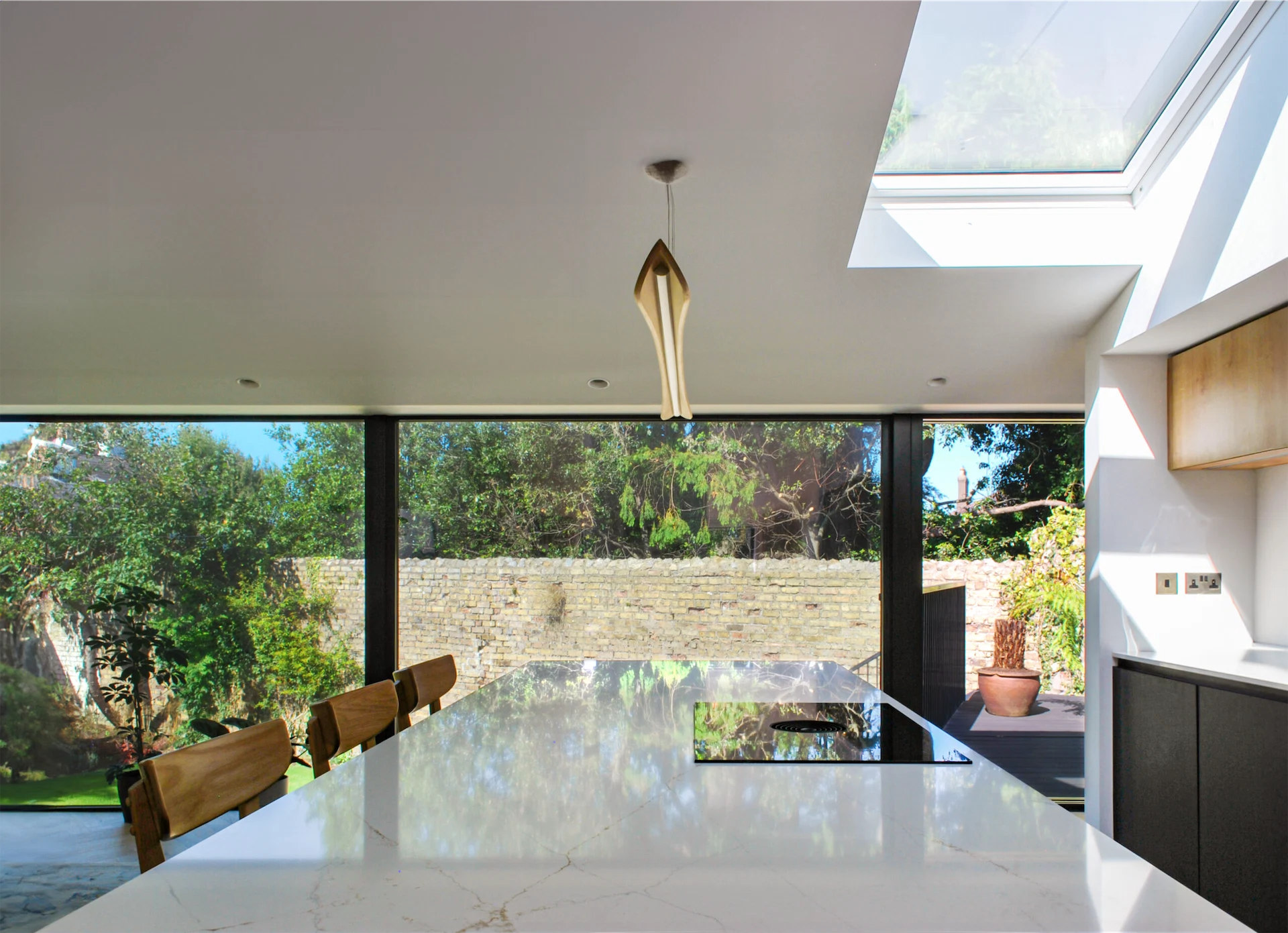 “The front garden was almost completely separate from the house, accessed only through a single door,” David points out. “We installed two sets of glazed double doors to the front giving direct access to the sunny garden for the first time. This, combined with the new large glazed sliders across the rear elevation means the living spaces can open up completely and create a view from front to rear garden. This is one of our favourite aspects of the design as it really feels like you’re surrounded by nature, almost like being in a tree house.”