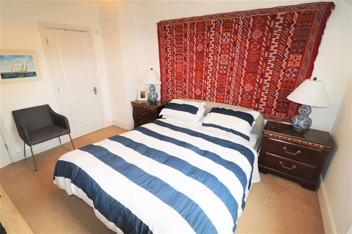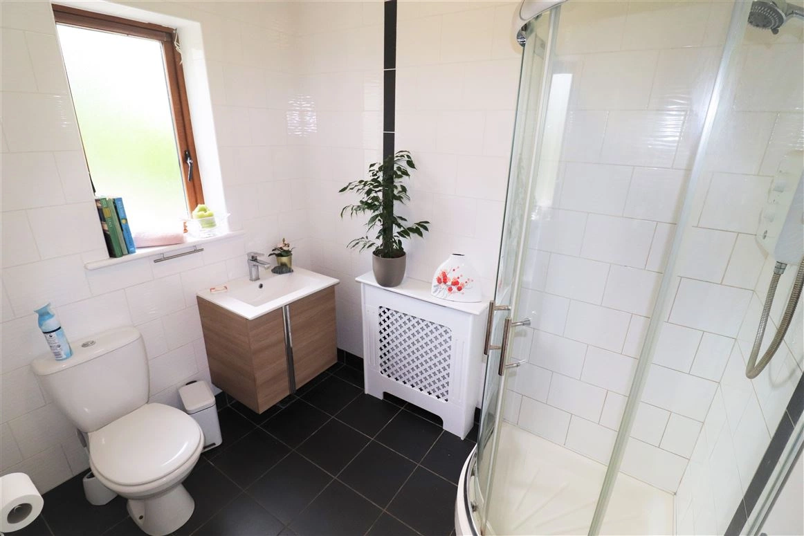 One of the four bedrooms is en suite, with its own walk-in wardrobe. The main bathroom has been tiled and features a bath and shower unit, a heated towel rail and a vanity unit.