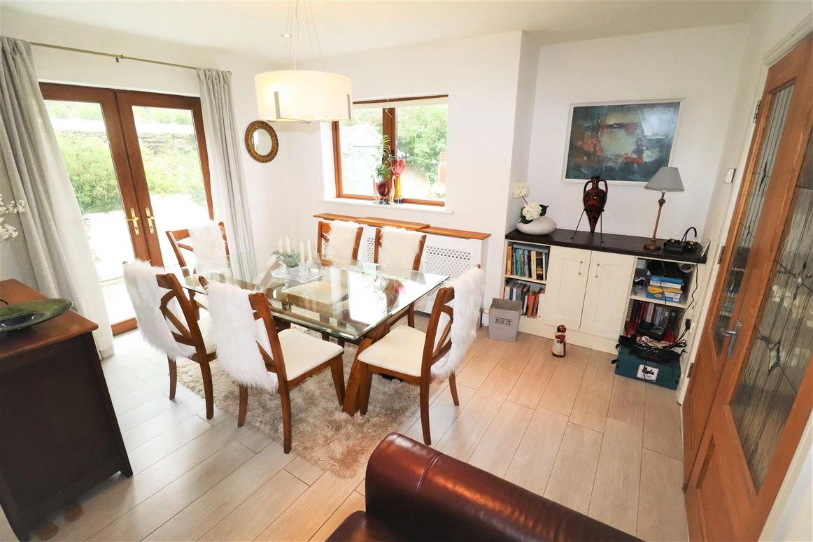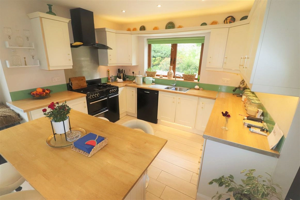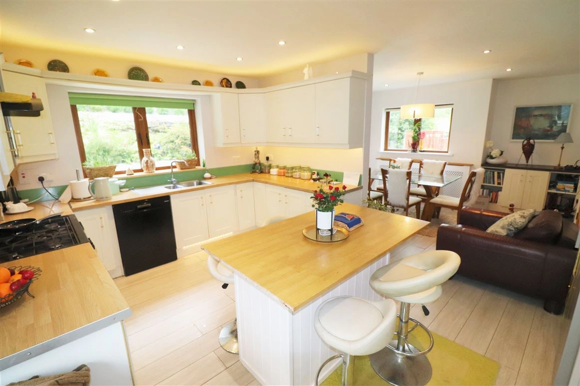 In the sitting room, a feature bay window and a small insert stove are the standout features. This room is warm and welcoming, making it the ideal space to entertain friends and family. Elsewhere in the property is the kitchen/dining room. The same wooden flooring continues here.