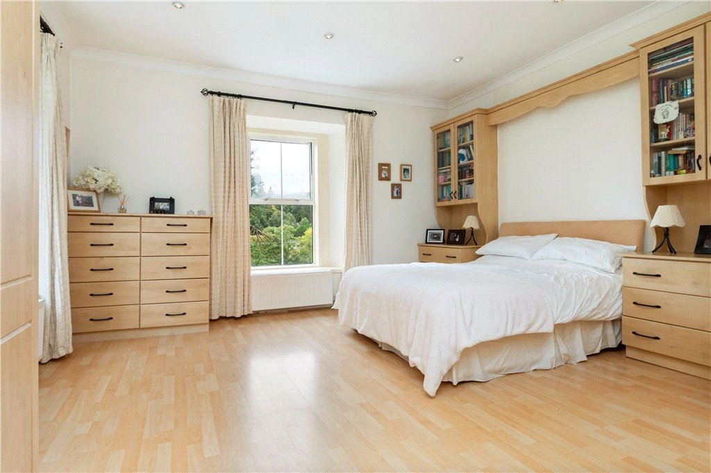 The first floor is accessed via an attractive staircase and homes five well-proportioned bedrooms – all with views over the grounds. The main bedroom also avails of an ensuite shower room while a further shower room serves two adjoining bedrooms and a bathroom at the half landing completes the internal accommodation.
