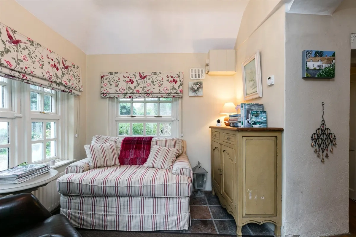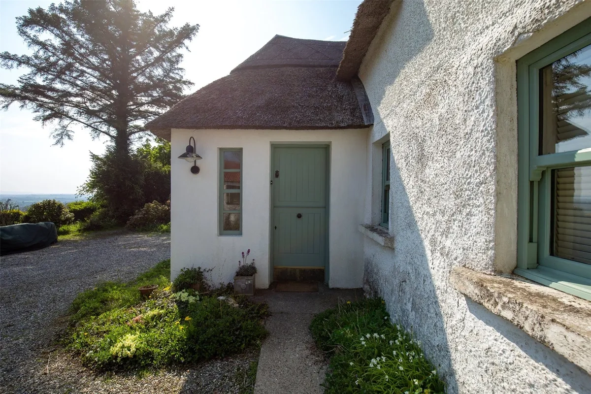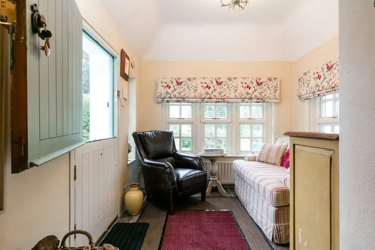 A gravel path leads to the front of the property, where you’ll find ample off-road parking. The front entrance – with a quirky half-door – opens onto a cosy tiled entrance porch, currently being used as a lovely seating area.