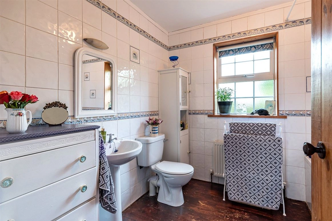 Both bedrooms are comfortable double rooms with views overlooking the garden. Sturdy wooden chests provide storage in each room, with wooden shelving also to be found in one room. The family bathroom can be found elsewhere in the house. White tiles have been fitted on the walls in this room which also has a Mira electric shower.