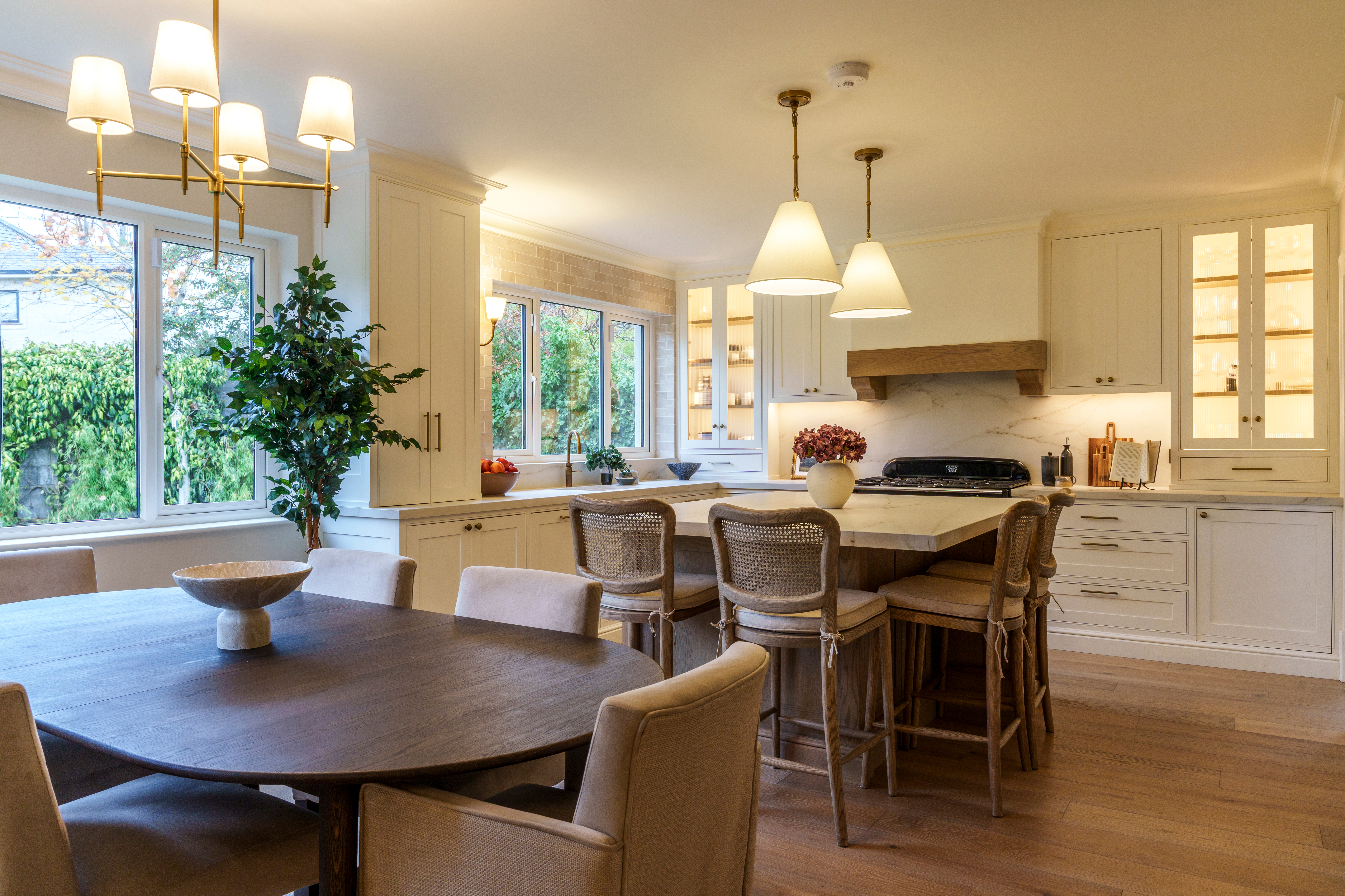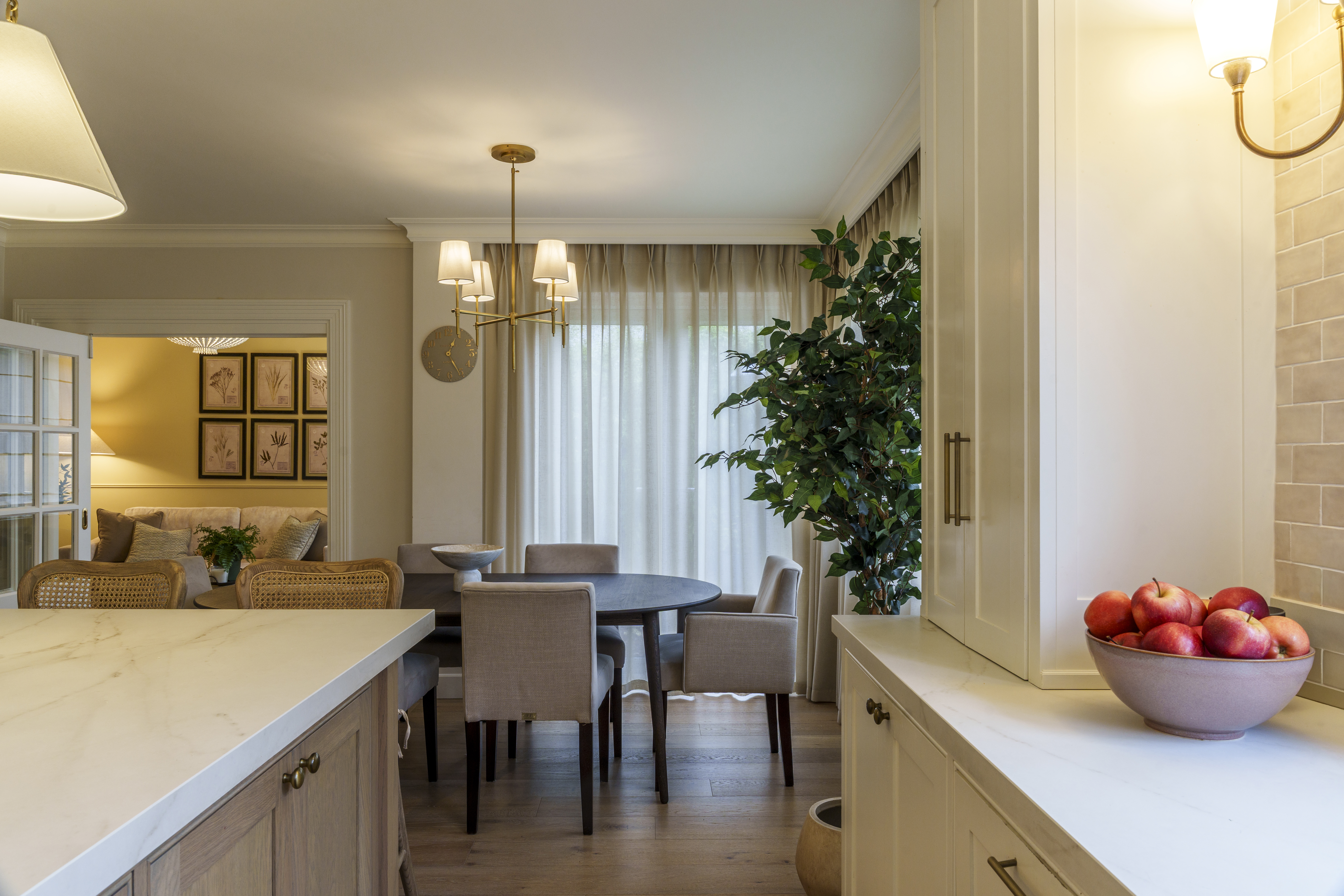 For example, Deirdre explains that the kitchen didn’t serve as a space to sit and chat. “Our clients wished for a room with the inclusion of a more informal dining and gathering space, alongside an elegant, relaxing dining area. A connecting TV room lacked character and didn’t appeal as a space to unwind.”