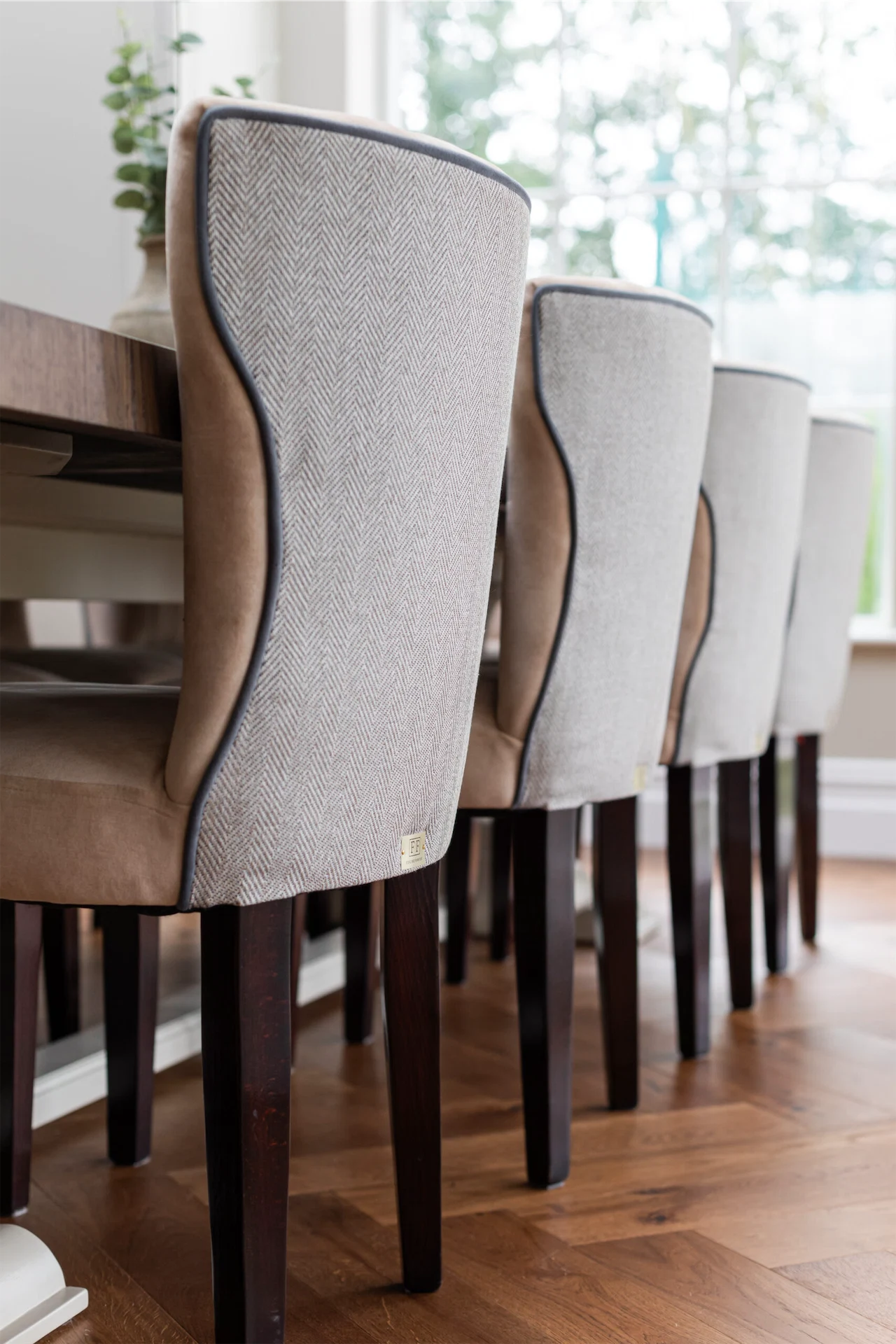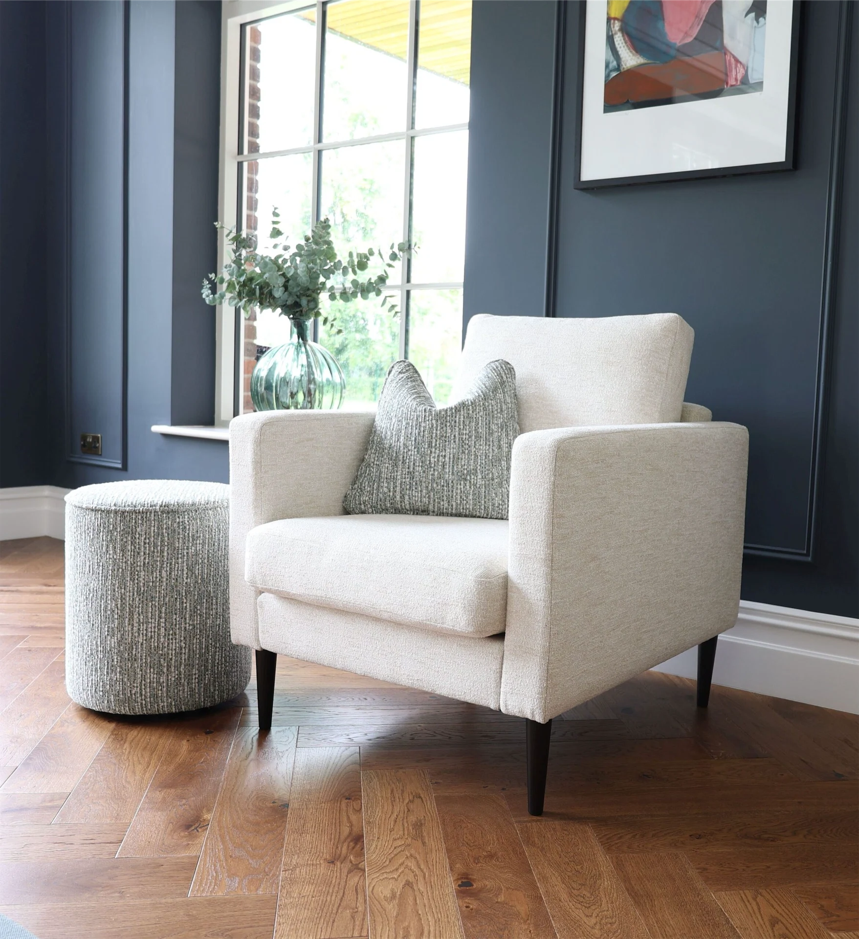 We worked with the team at Finline Furniture to create the upholstered furniture, sofas, armchairs and the dining chairs, all handmade in county Laois by a team of skilled carpenters, craftsmen and cutters. The large-scale furniture items, artwork and soft furnishing balance the size of the space, while a moody palette adds charm, warmth and personality.