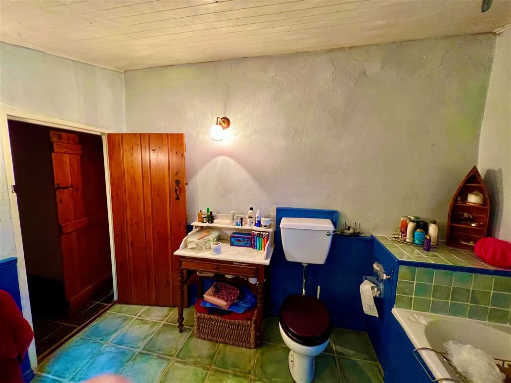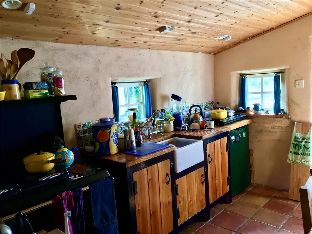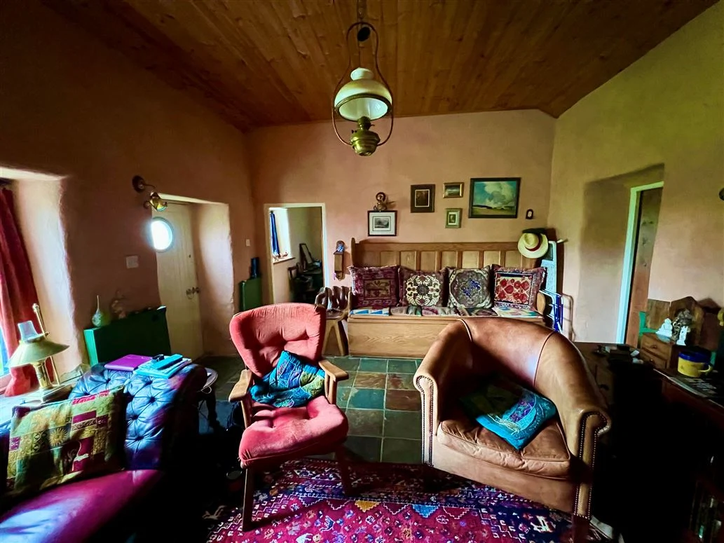 There is a history of music and art here, which seems to have infused the cottage and studio with a sense of character and place that makes this property very special indeed. The original cottage has two bedrooms, one bathroom, utility room, kitchen/ dining room and central living room. Features of note include but are not limited to coloured slate floor tiles, handcrafted iron masonry, local stone and fired earth marble mosaic features.