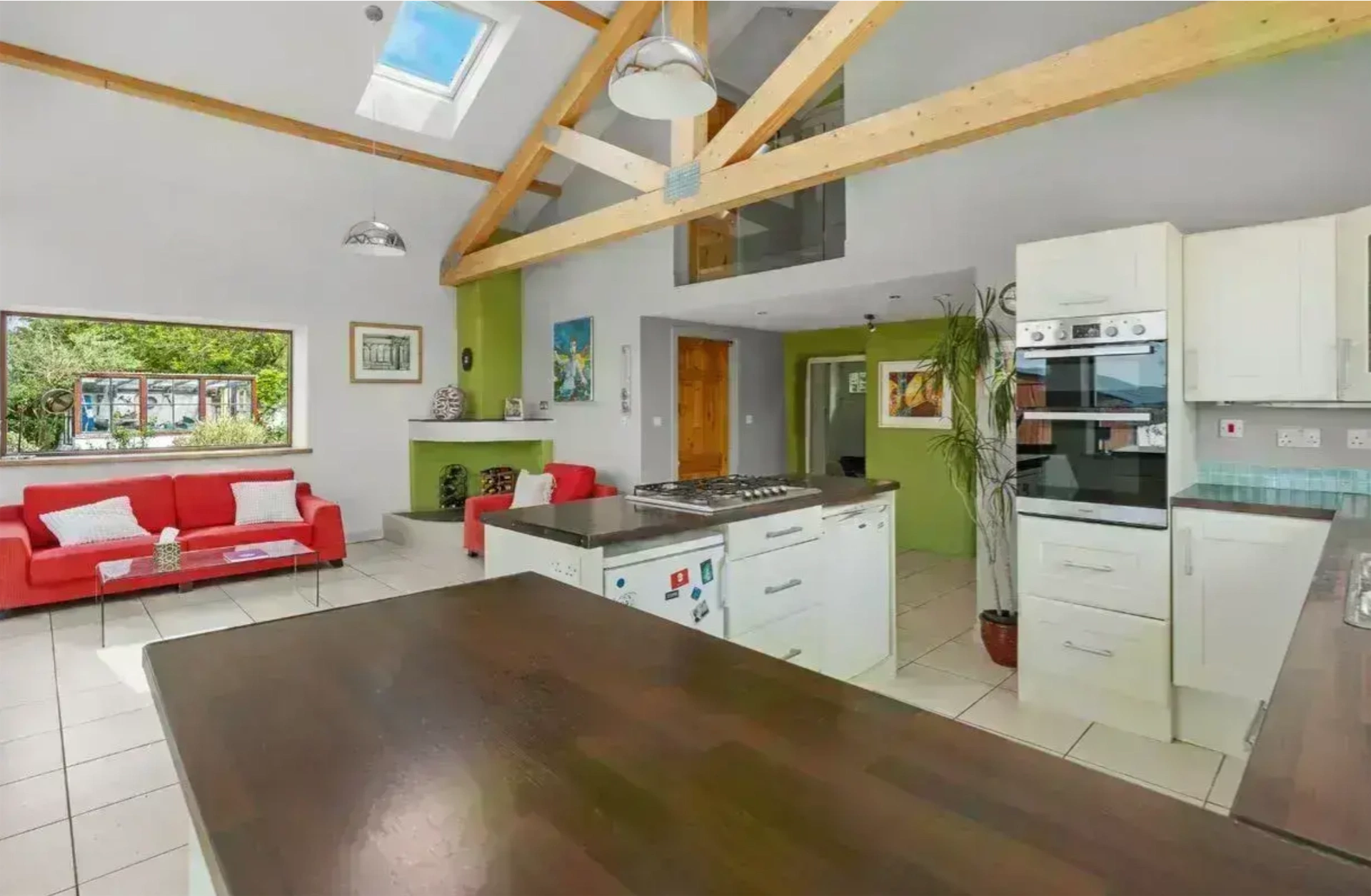 Upstairs, there are three further bedrooms as well as another bathroom, while the landing looks out over the open-plan living and kitchen space below.