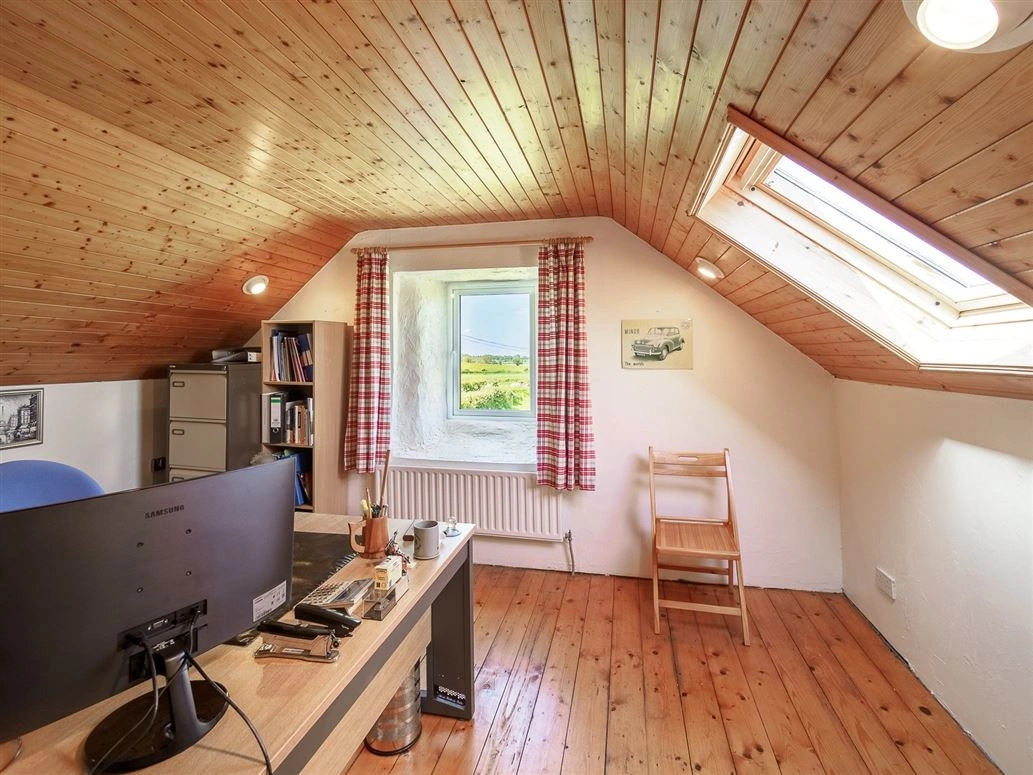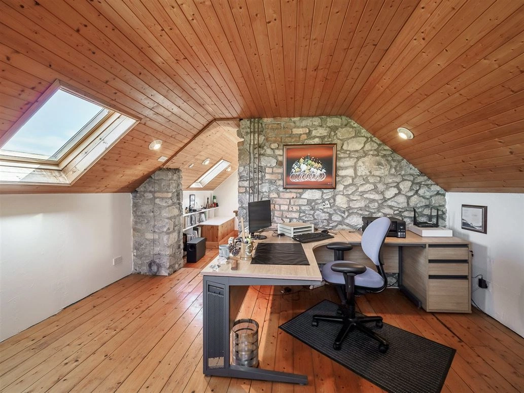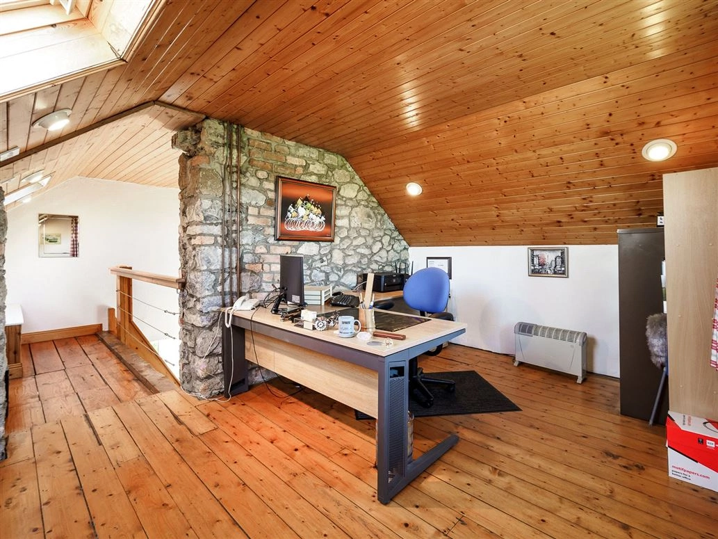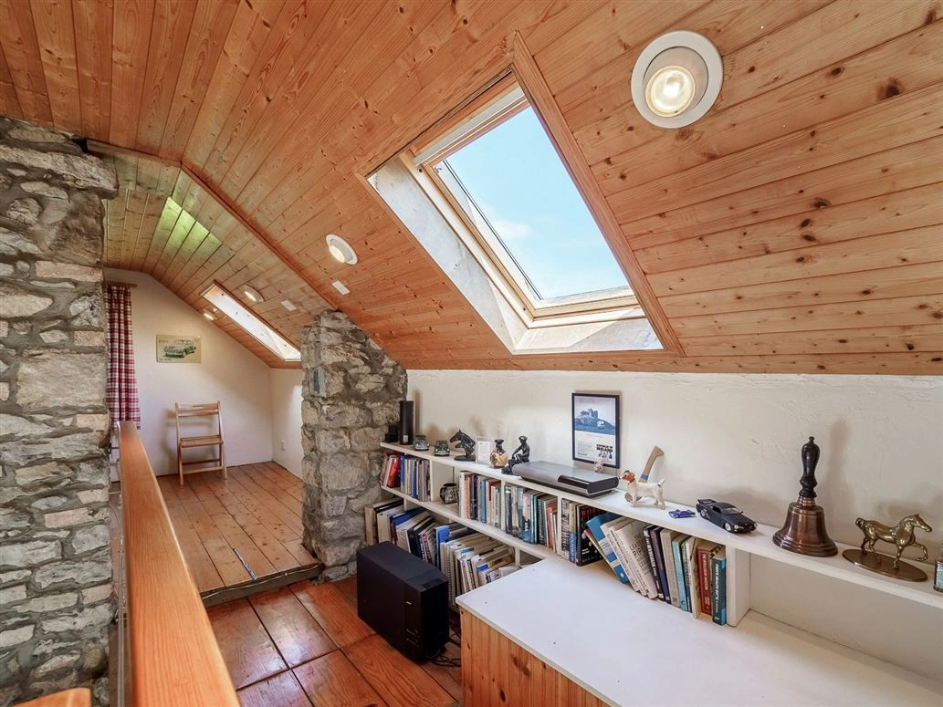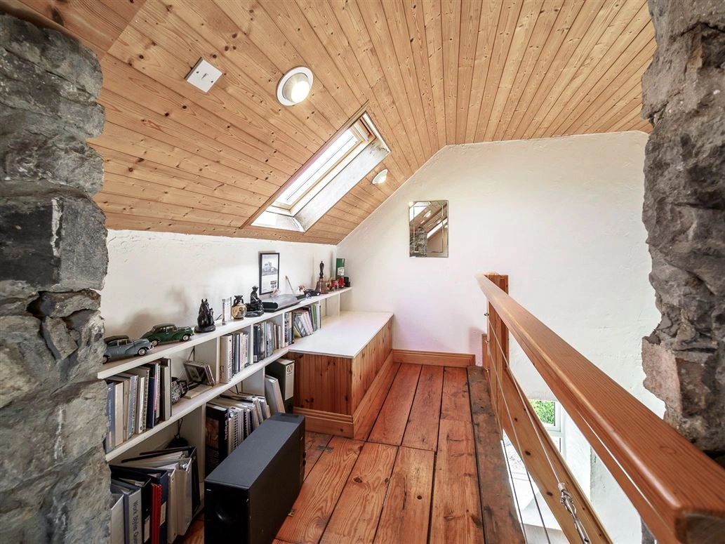 Stone stairs lead the way to the upstairs landing. This area is currently being used as a home office/study area, however, there is potential to convert it into another bedroom should you so please.