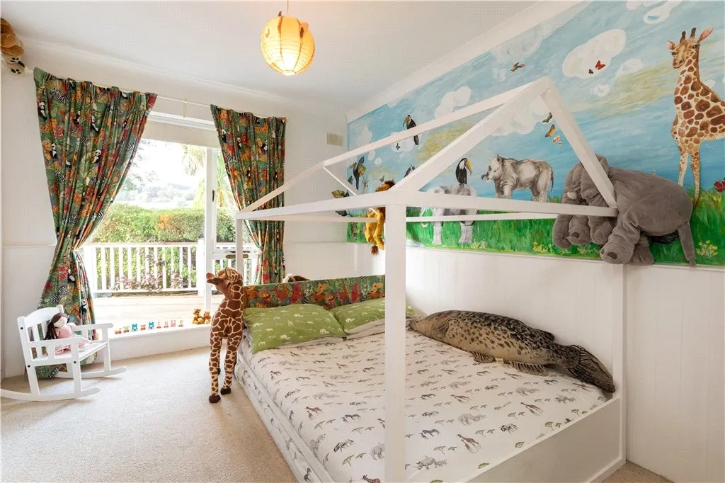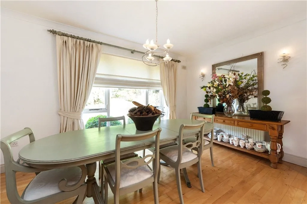 The eastern wing hosts a playroom, a separate living area, a formal dining room, and a charming study. All four bedrooms can found in the western wing, including the master suite which has its own en suite and walk-in wardrobe. A generously sized family bathroom with bath, storage room, and a WC complete the accommodation.