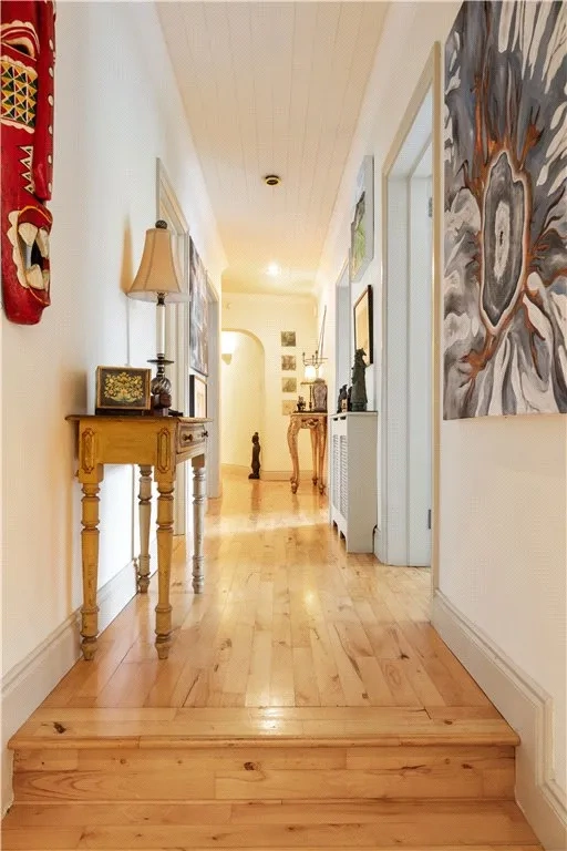 Beech hardwood floors greet you in the hall as you enter inside the home. A warm, brightly lit space, it sets the tone for the rest of the home which is just as welcoming.