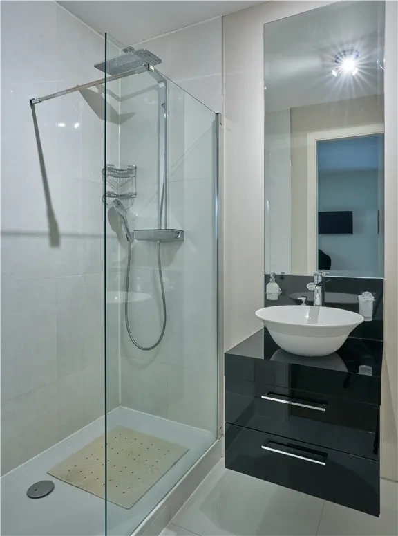 The entrance hall of the apartment is a tiled space, and has two storage cupboards, perfect for coats and bags.