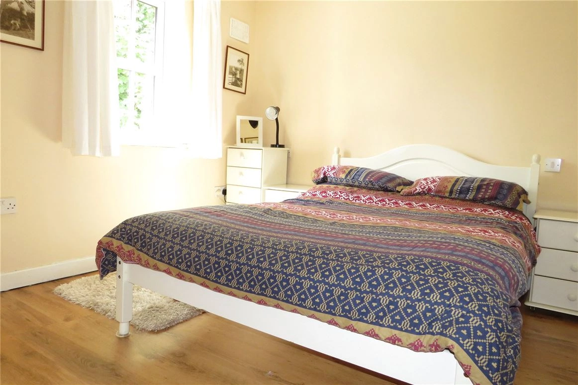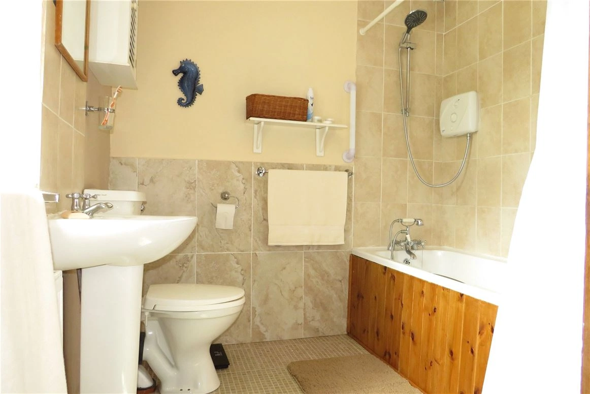 One of the two bedrooms can be found on the ground floor. There you’ll find wooden floors and a large built-in wardrobe. Meanwhile, the ensuite bathroom has a two-in-one bath/electric shower.